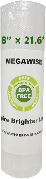 - Product 2: 💞 Mega Value 💞: Vacuum bags 8''x 21.6' increase 50% of the suction power with embossed channels design. Customsize bags eliminating freezer burn and dehydration while maintaining food 7 time fresher yet flavorful. Pre-cut design.
