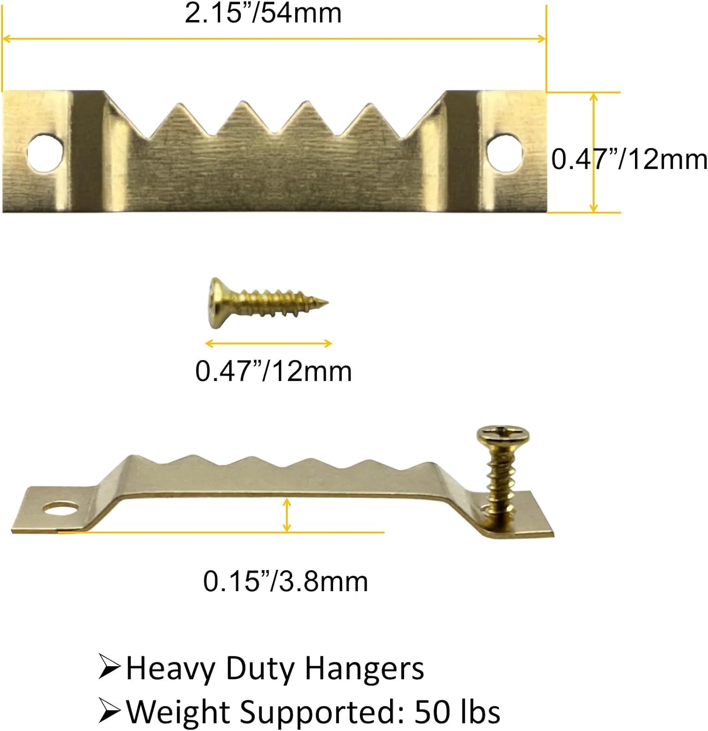 50 Pack Large Sawtooth Picture Hangers Steel Picture Hangers Picture Frames Hangers with Screws Picture Hang Solutions, for Hanging Clock Paintings Artwork Picture Frame Hook Photos (Gold)