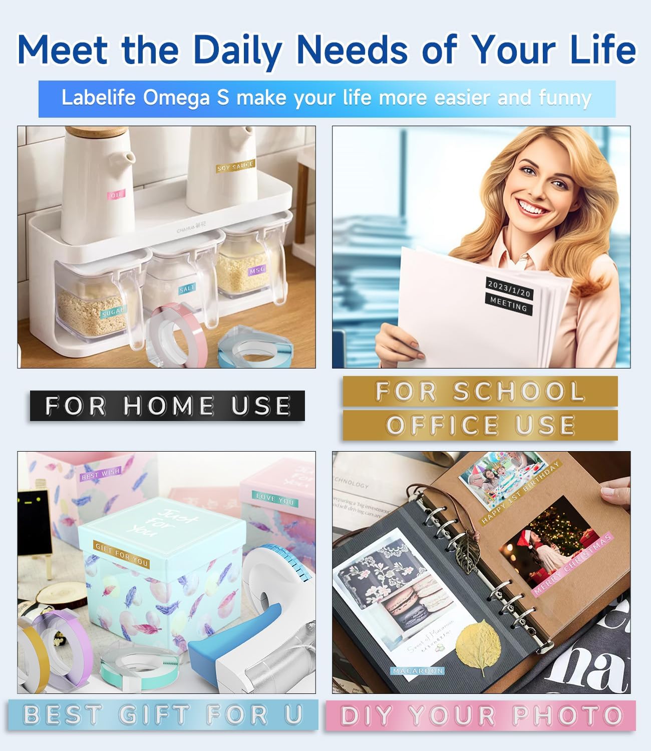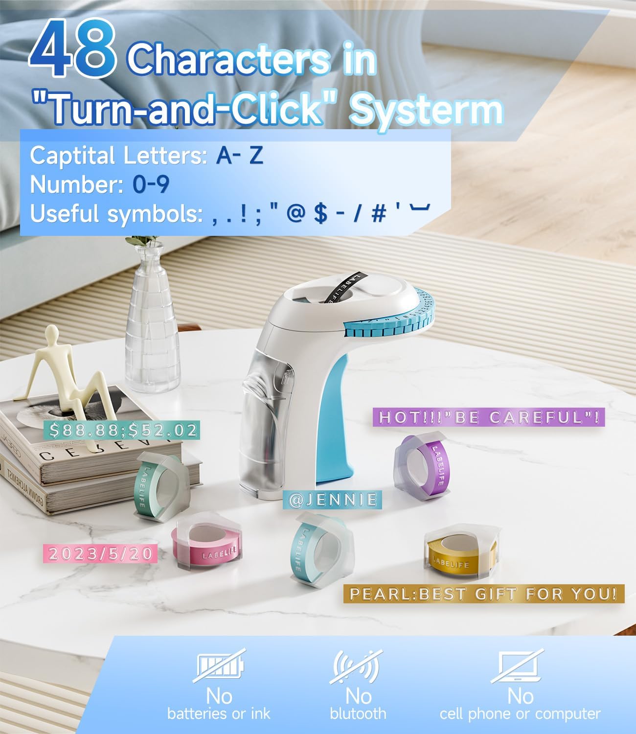 - ăEasy-to-useăLabelife Omega S Embossing Label Maker, Easy to get started printing retro label tapes without batteries or ink, more eco-friendly and convenient. Turn the dial to select characters and press the handle to print out the label, for quick application. Simple operation suitable for all ages