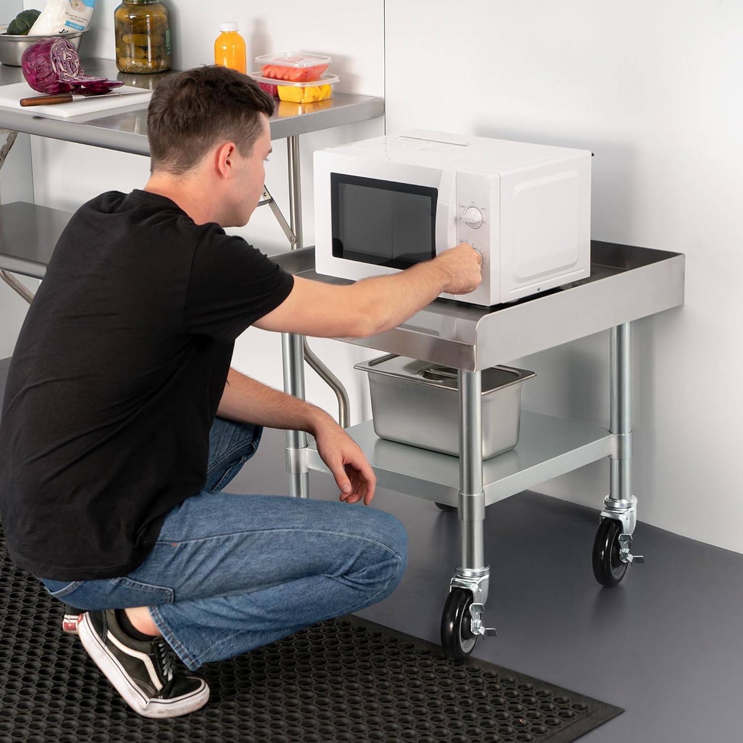 - [MATERIAL SAFETY & STABILITY] - The stainless steel equipment stand is made of 16-gauge type 430 stainless steel and is an ideal choice for storing equipment and kitchen tools. The surface is very smooth and easy to clean, and the metal preparation table will not be damaged by food and liquid, so there is no need to worry about it.