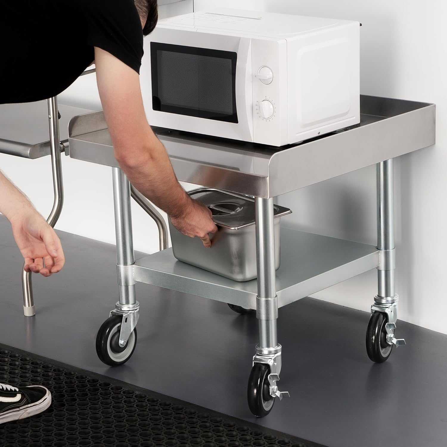 HARDURA Stainless Steel Equipment Work Stand 24" x 24" Prep Table with Under Shelf and Caster for Commercial & Workplace, Home, Hotel, Garage