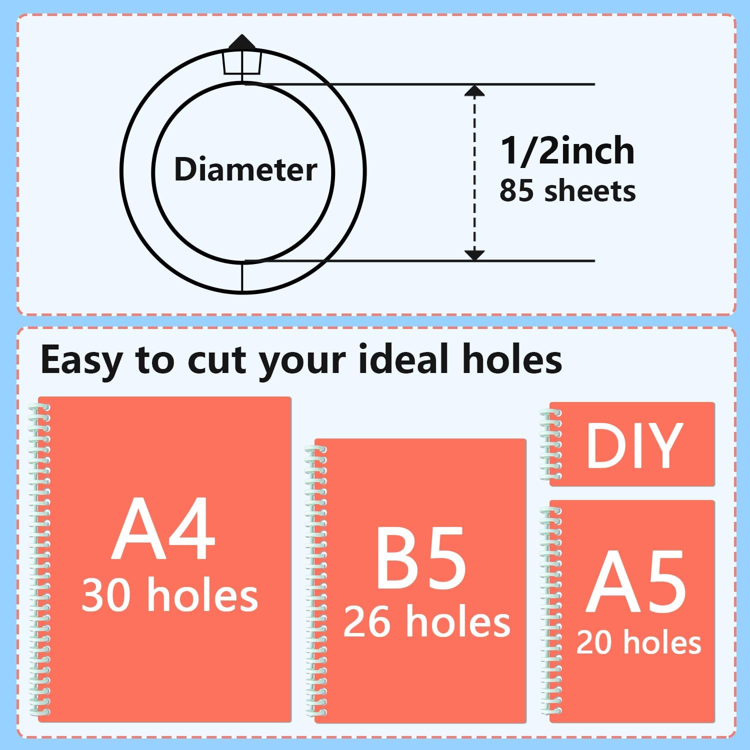 - Refillable 85 sheet spiral binding paper: Each spiral binding coil is with maximum capacity 85 sheets of refilling paper, making them a cost-effective and convenient choice for all your binding needs.
