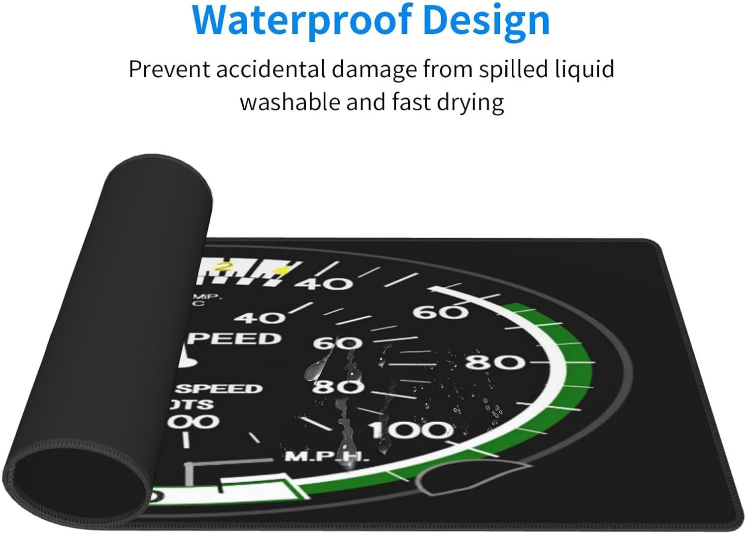 Aircraft Speedometer Pilot Flight Mouse Pad, Airplane Large Big Gaming Mouse Pad Desk Pad, Mousepad with Non-Slip Rubber Base, Extended XXL Mouse Mat for Computer Laptop Office Accessories