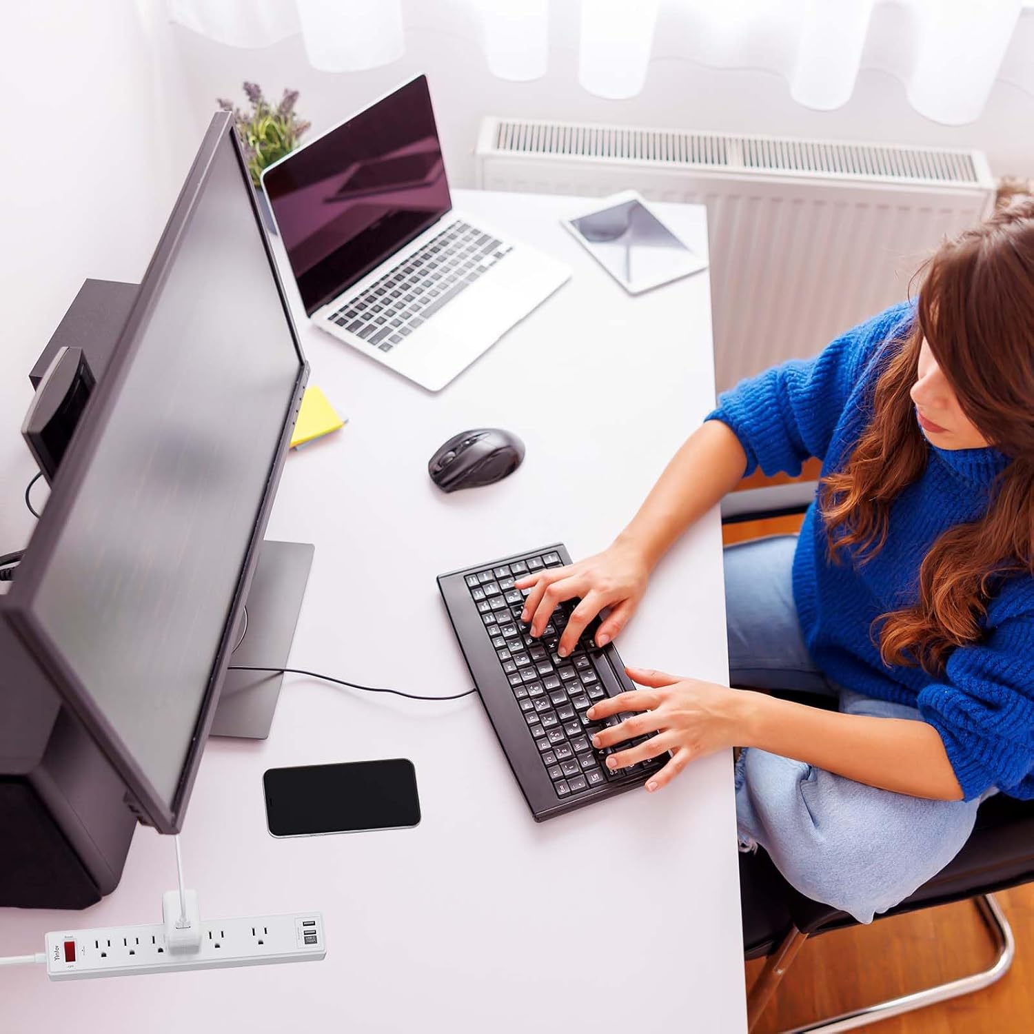- 20 Feet Flat Plug Power cord with Cable Ties: 20Ft Extension Cord makes it more flexible, Reusable Fastening Cable Ties Can tie up the unused cord and make it better organized. the Mounting hole at the back allows this wall mount power strip to be securely installed in various applications, such as wall mounts, floor mounts, workbenches, under counters & more.