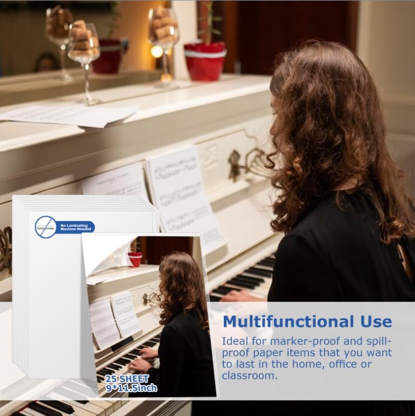 - 【Easy To Use High Quality】:You'll receive 25 Sheets Self Seal Laminating Pouches 9x11.5inch; Enough quantity to satisfy your daily use and demand on sharing with others.200 Mils Thick upper membrane and 70 Mils Thick lower membrane= 270 Mils Total Laminate per Sheets.Ideal for protecting items from damage Delivers a clear professional finish that is also photo-safe.