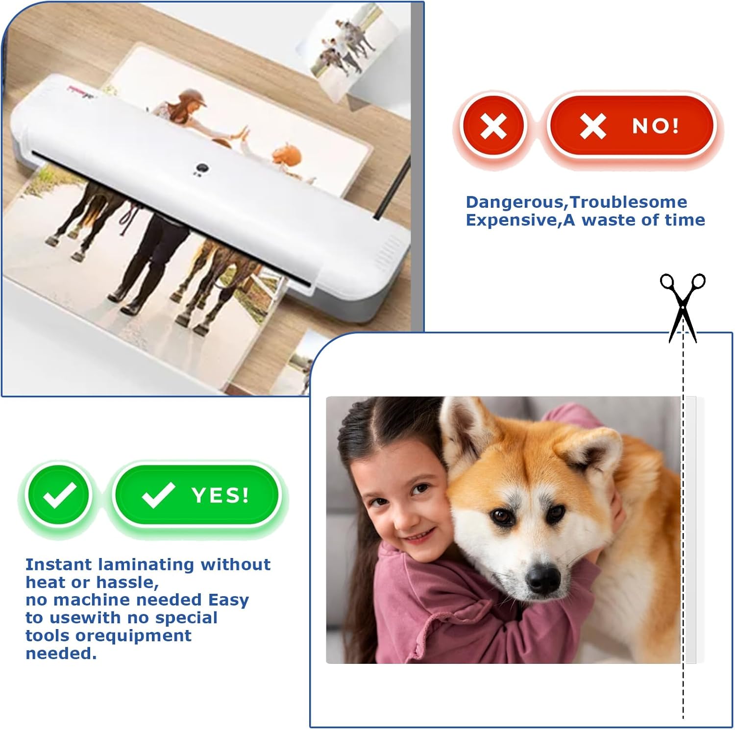 - 【Seal Laminating Pouches】:Instant and permanent laminating without heat or hassle, no machine needed Easy to use with no special tools or equipment needed.