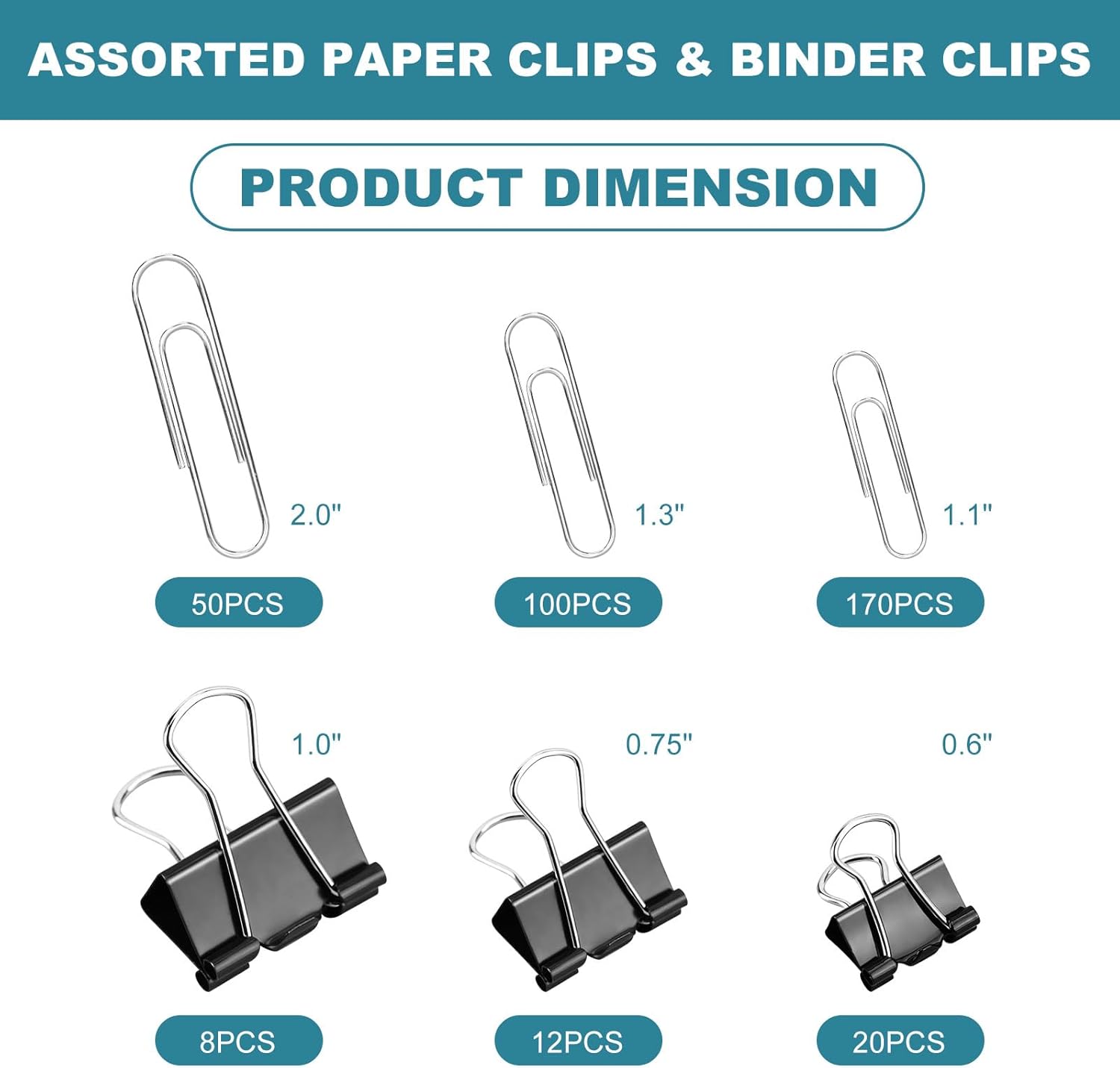 - ADAPTABLE APPLICATIONS: The paper clips and binder clips offer a multitude of uses for various purposes. Paper clips excel at temporarily fastening pages, while binder clips provide a secure grip for larger stacks of papers, making them well-suited for reports, presentations, or file organization.