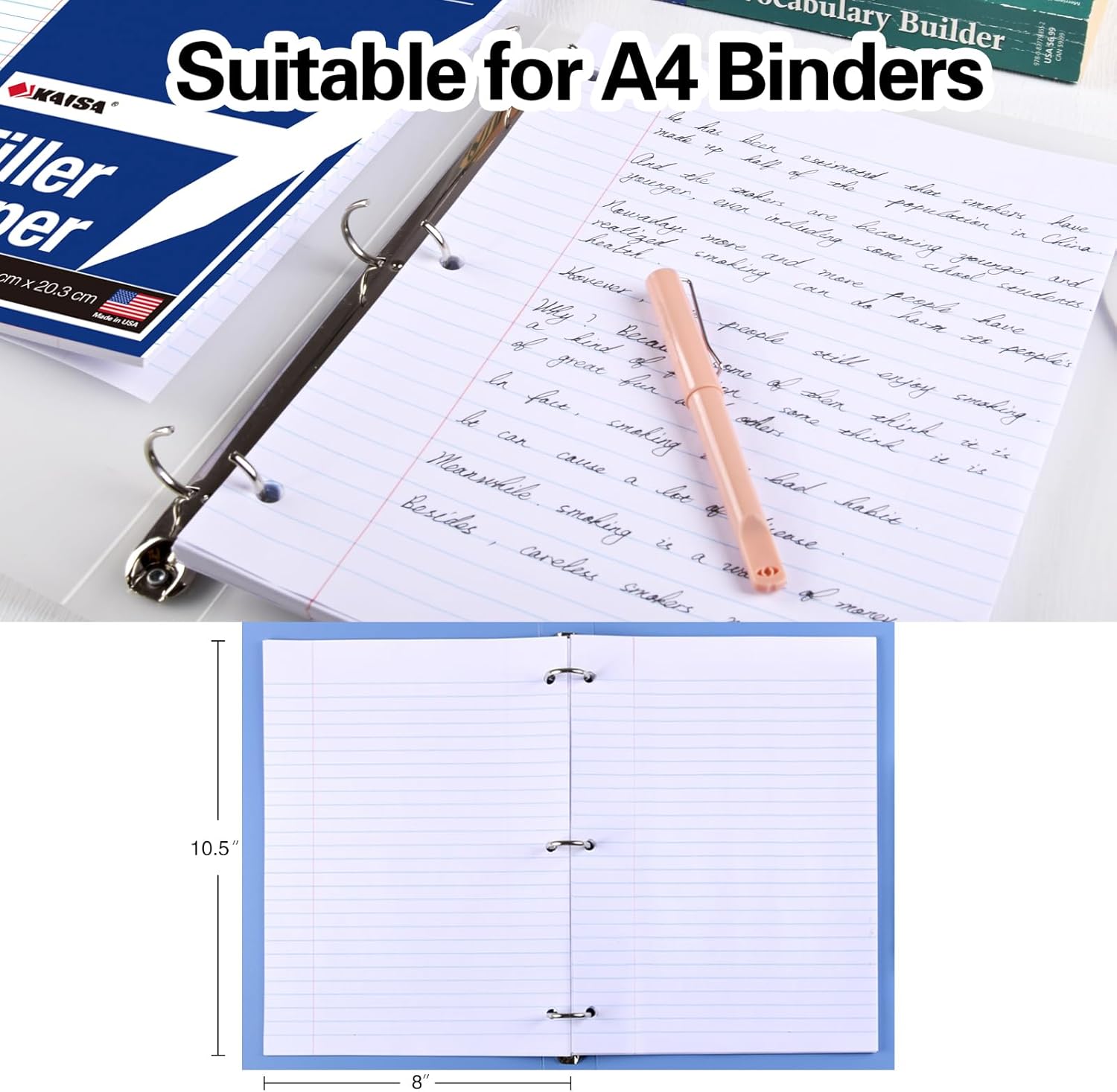 - ☆ Standard size: KAISA binder paper have 3 pack, 150 sheets per pack, total 450 sheets filler papers, 10.5x8in letter sized and 3-hole punched to fit standard ring binders & pocket folders with fasteners.