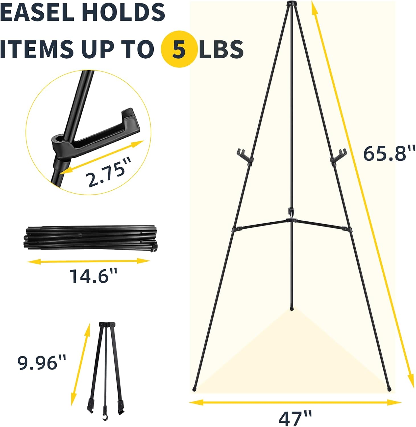 - FOLDABLE DESIGN : Our picture easel stand is collapsible, measuring only 15 inches when folded, weighing only 2.2 pounds, easy to carry and comes with a small bag.