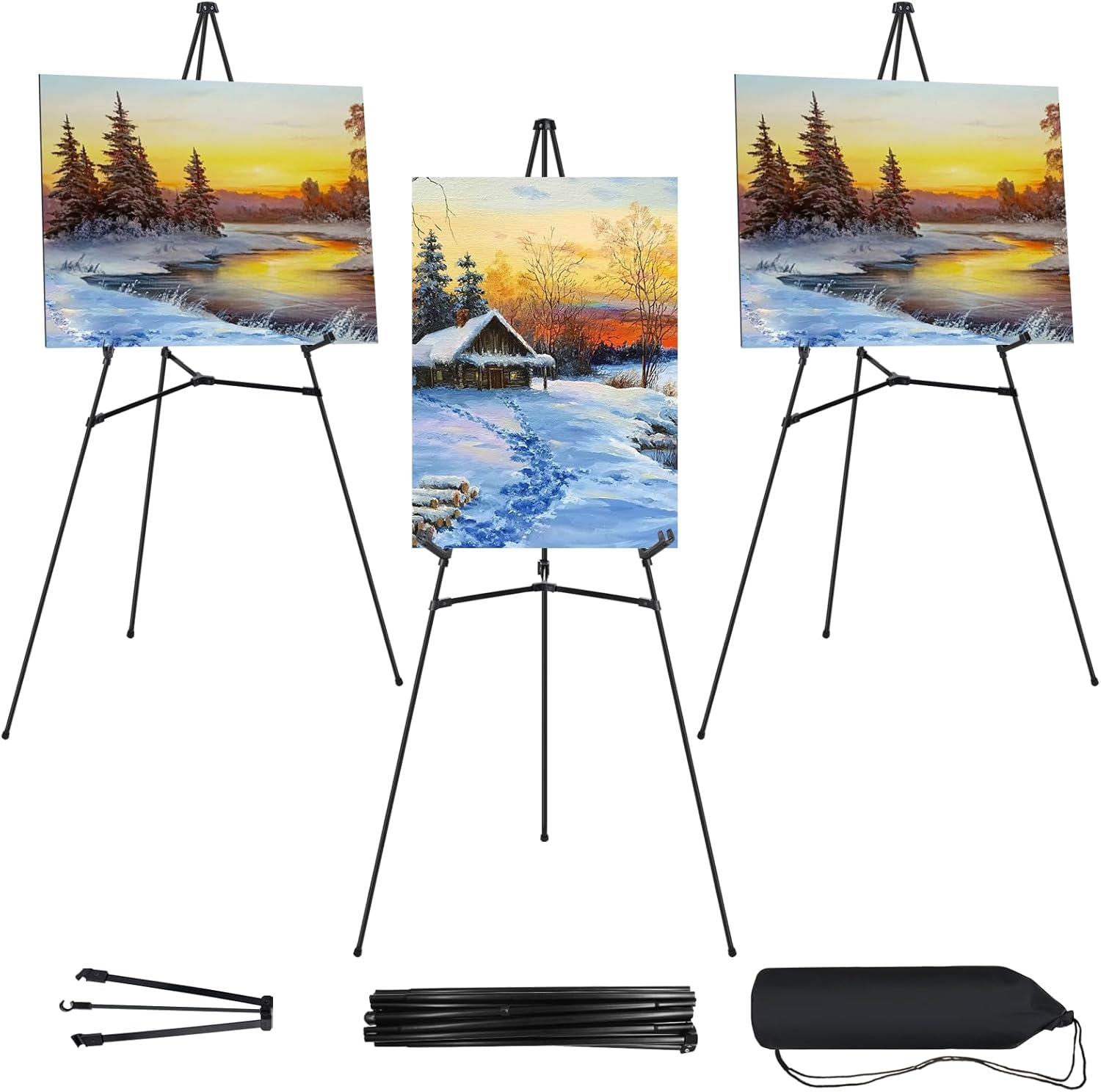 3 PCS Black Easel Stand for Wedding Sign Stand, 65 Inch Adjustable Metal Easels for Display, Portable Folding Easel for Wedding, Display Show, Arts, Poster with Portable Bags