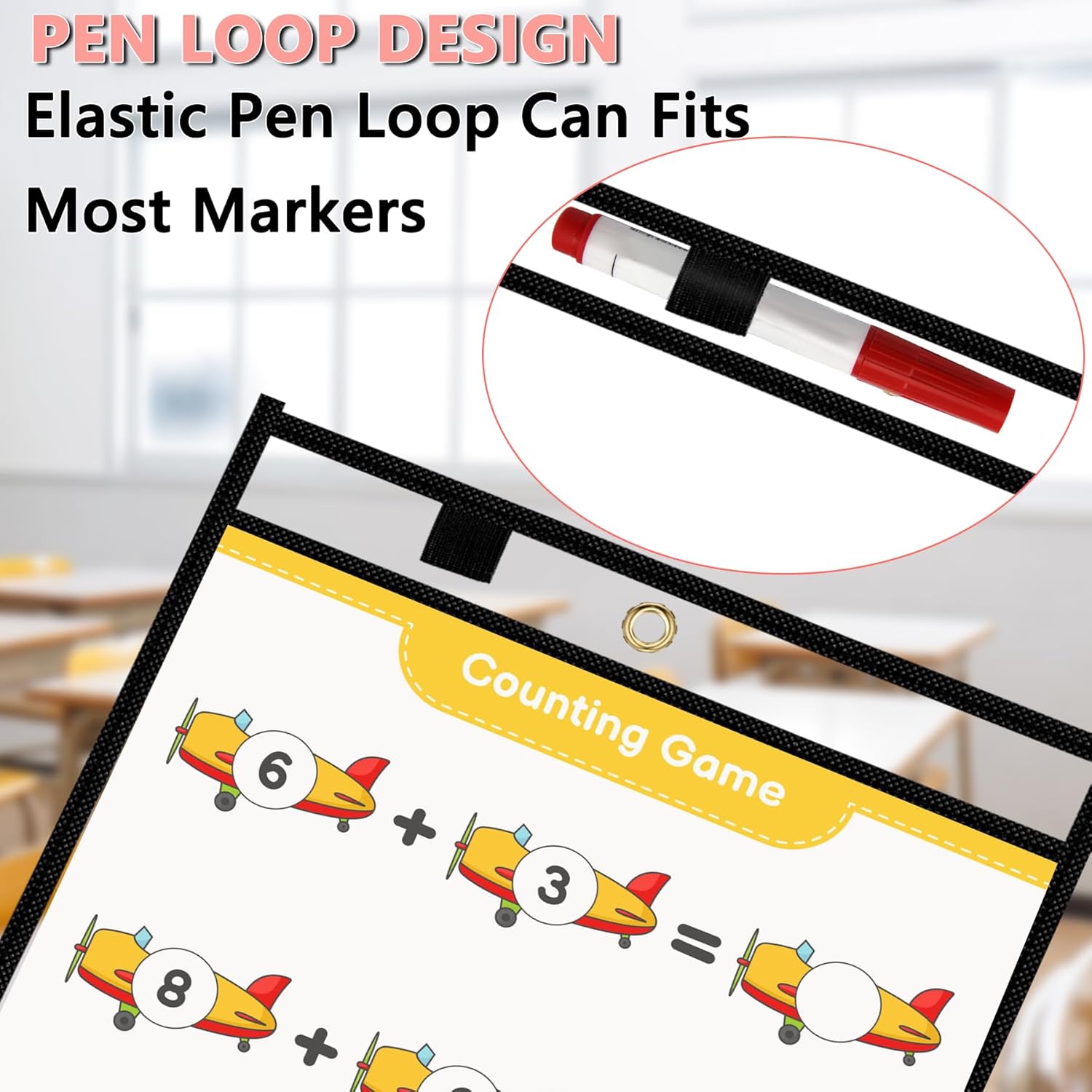 - Includes 30 packs dry erase pockets - perfect classroom teacher must have supplies! Clear plastic document sleeves with black borders turn any worksheet into reusable learning activities. Ideal for teachers, homeschool parents, and educators needing durable sheet protectors for classrooms, learning centers, offices, or home school use