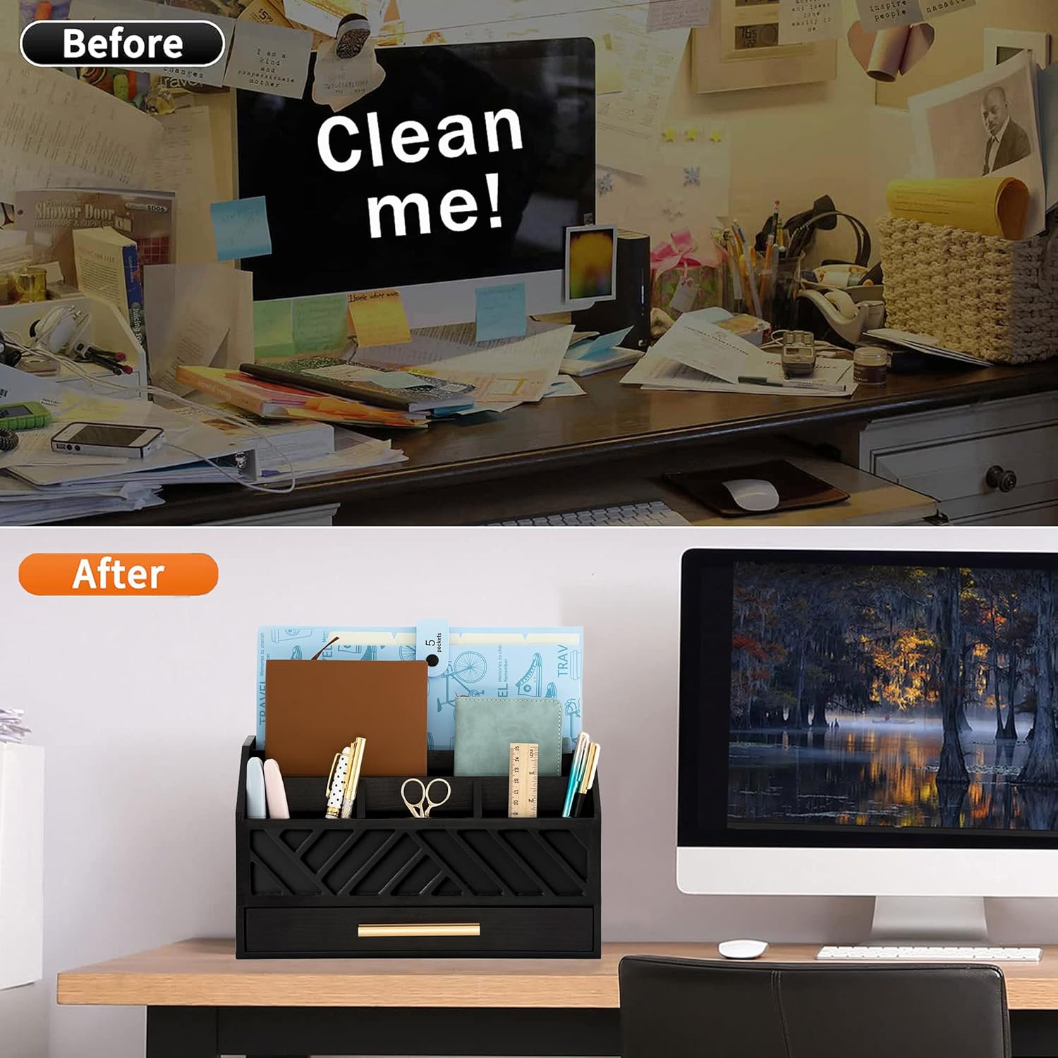- EXQUISITE APPEARANCE: This black desk organizer has a modern and elegant appearance design, which can help you and your family eliminate the troubles of daily clutter. It can help you create a designated workspace that is both functional and aesthetically pleasing