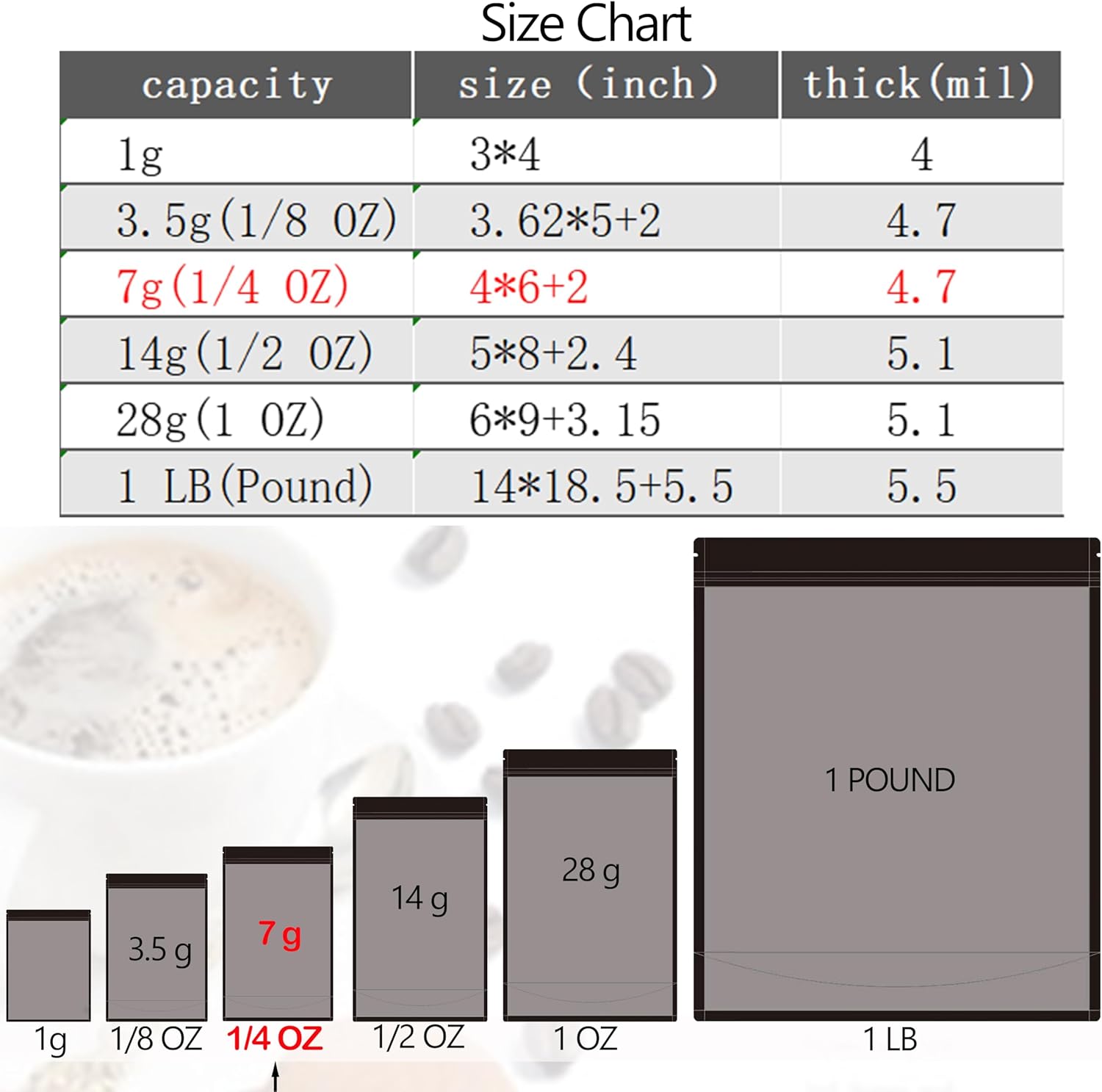 100 Pack Mylar Bags, 4 x 6 inchs Premium Smell Proof Bags with Double-sided Matte Design ,Resealable Food Storage Aluminum Foil Stand-up Packaging Bags. (7 Grams or 1/4 Onces)