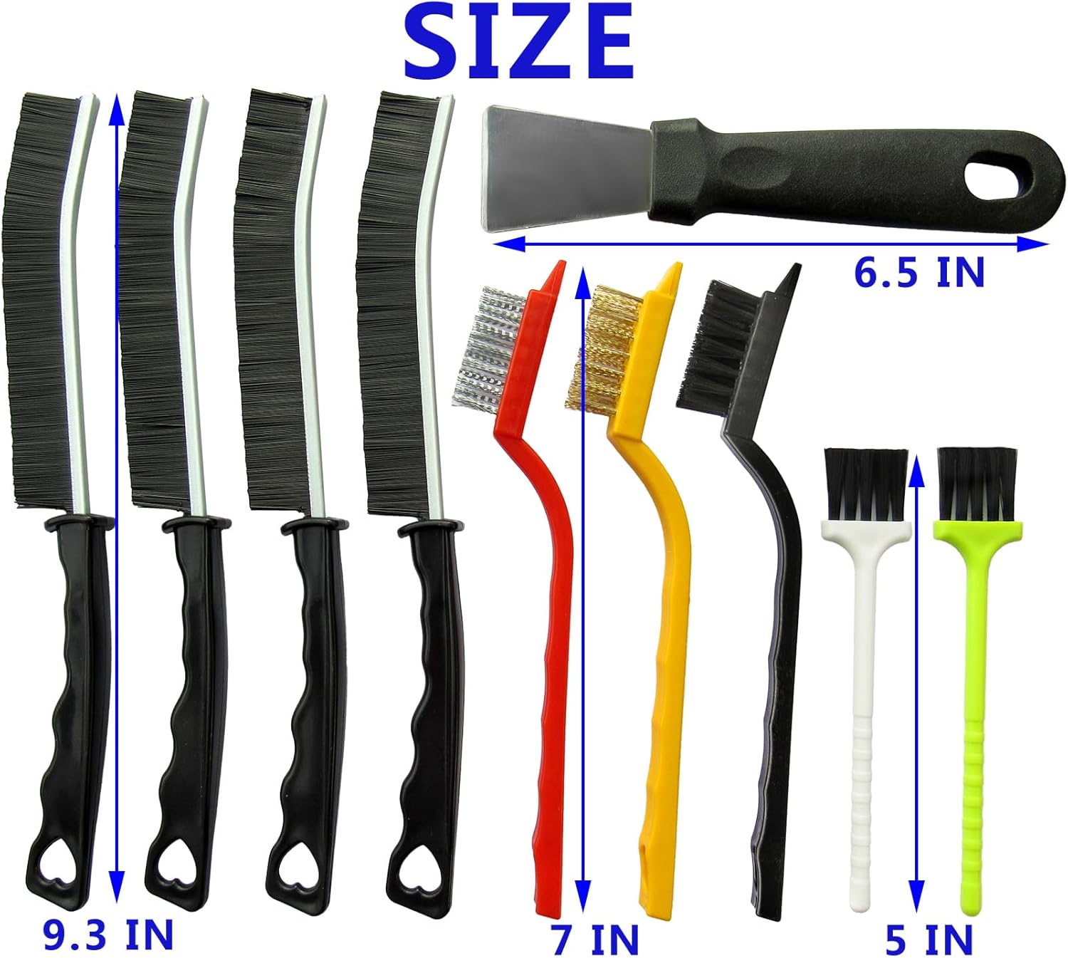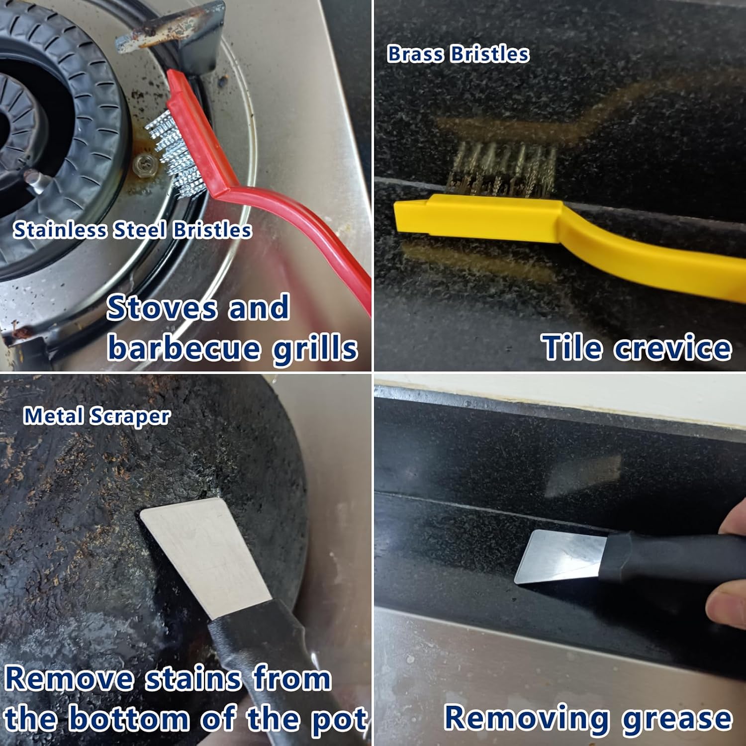 - This cleaning tool set includes 4 hard bristled gap cleaning brushes, 3 different hardness gap cleaning brushes (steel, copper, nylon), 1 scraper, and 2 household appliance small brushes to meet your different requirements, easily cleaning all residual dirt and dirt.
