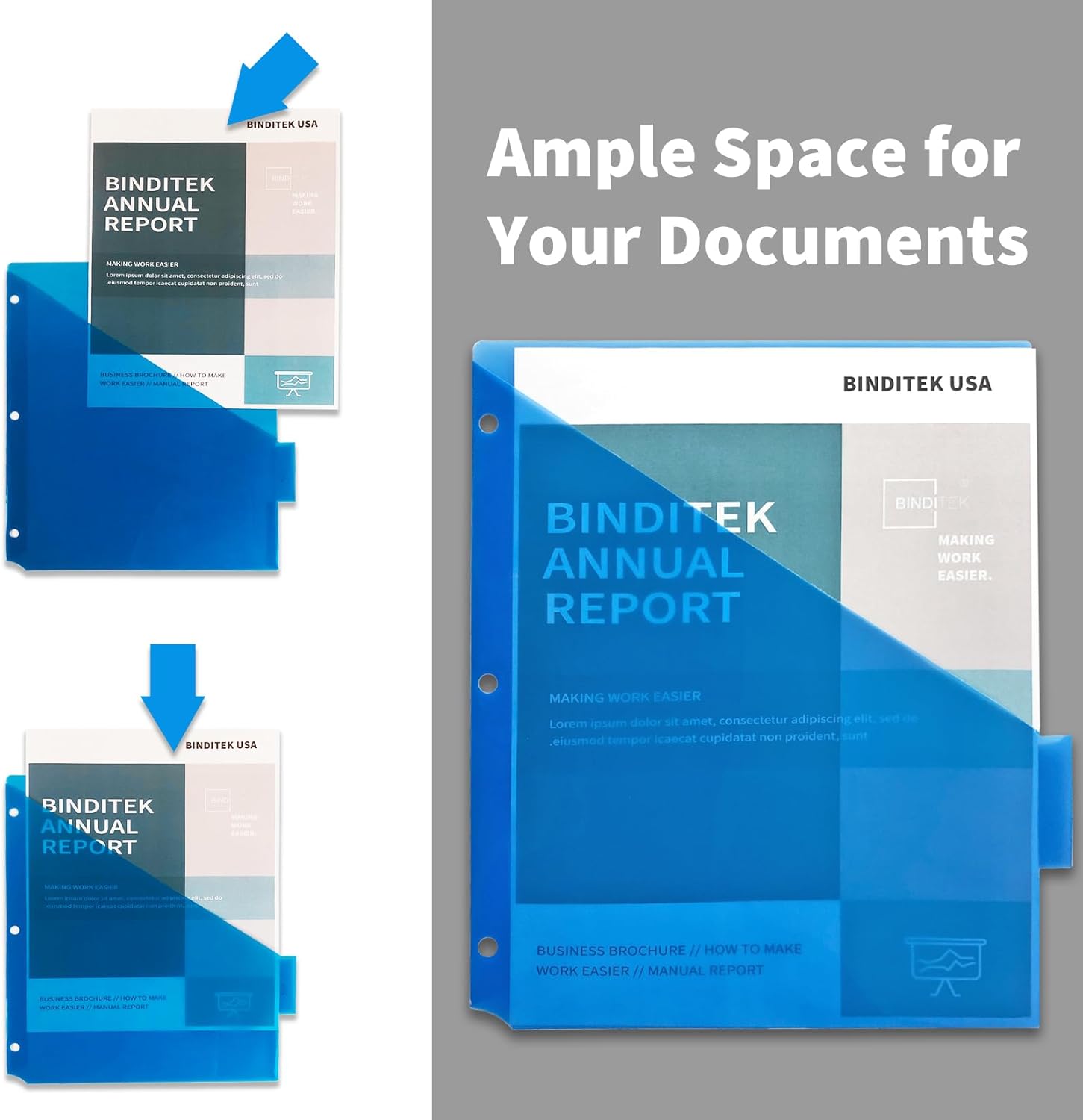 - 【Ample Space for Loose Documents】Each 5-tab binder divider is equipped with an integrated front pocket, providing extra storage capacity for your loose papers. Three closed sides creating a wide opening that allows papers to easily slide in and out. Keep your documents neatly organized and stay securely with these 5-tab binder dividers with pocket.
