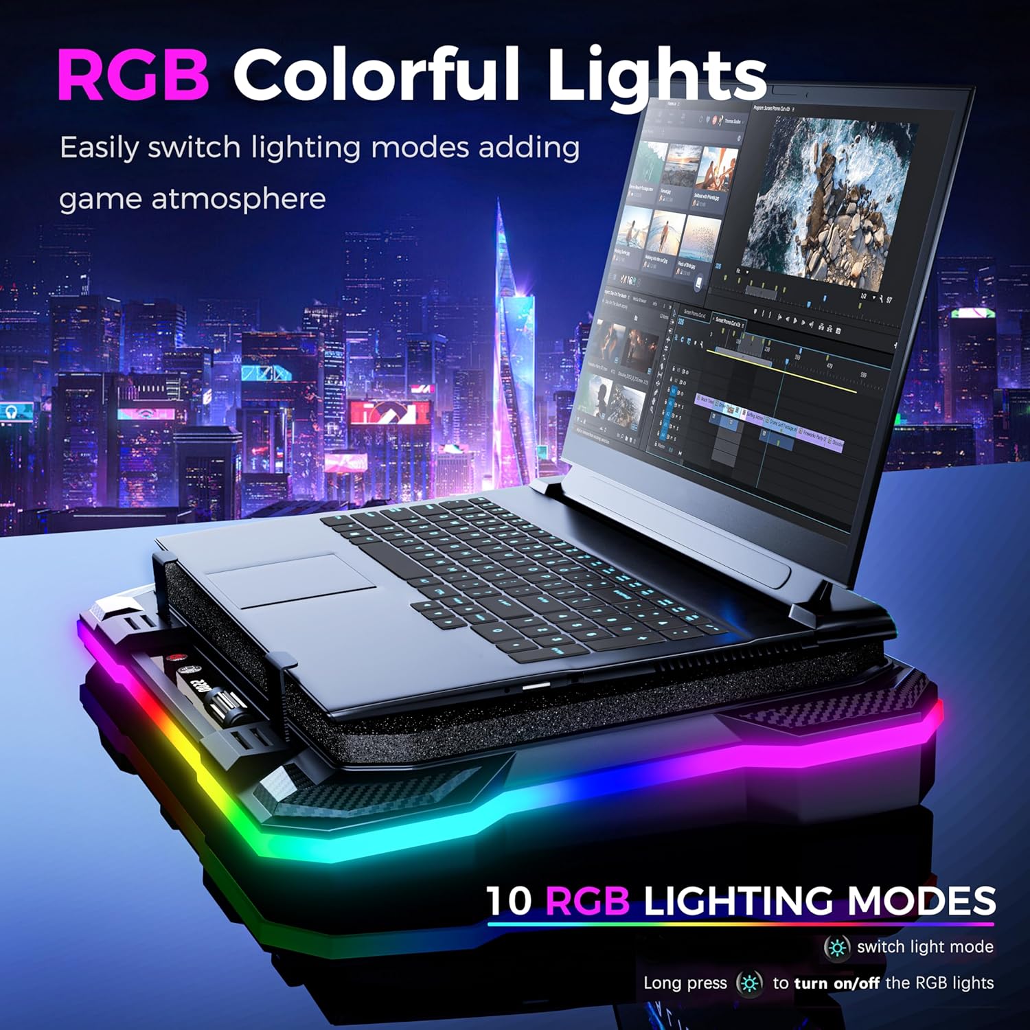 AICHESON Gaming Laptop Cooling Pad with Powerful Cooler Fans, RGB Lighting and Phone Holder for 15-19 inch Laptops and PC Computers
