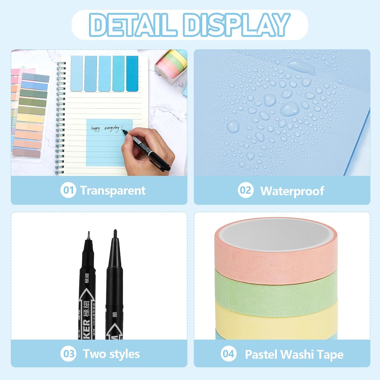 - Quality PET Notes: conveniently packaged in an aesthetic design, the 500 sheets of transparent sticky notes, and 720 pieces of sticky tabs are made from quality PET material which is waterproof, reliable, not easy to fade and tear; The design makes the appearance transparent and will not hide your notes, notes are also not to be left on the page, you can write the message and paste our notes according to your needs; It also includes 5 magnetic bookmarks to keep tracks of your readings