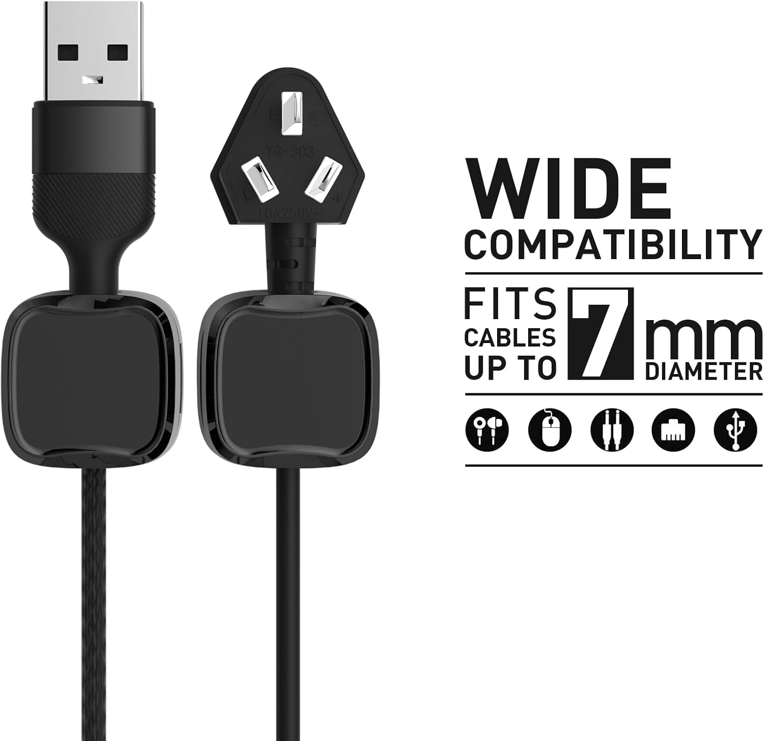 - WIDE COMPATIBILITY: Fits cables up to 7mm diameters, which include your iPhone charger cable, USB cables, type C cable, network cables, HDIMI cord, kitchen appliance power cord and so on.