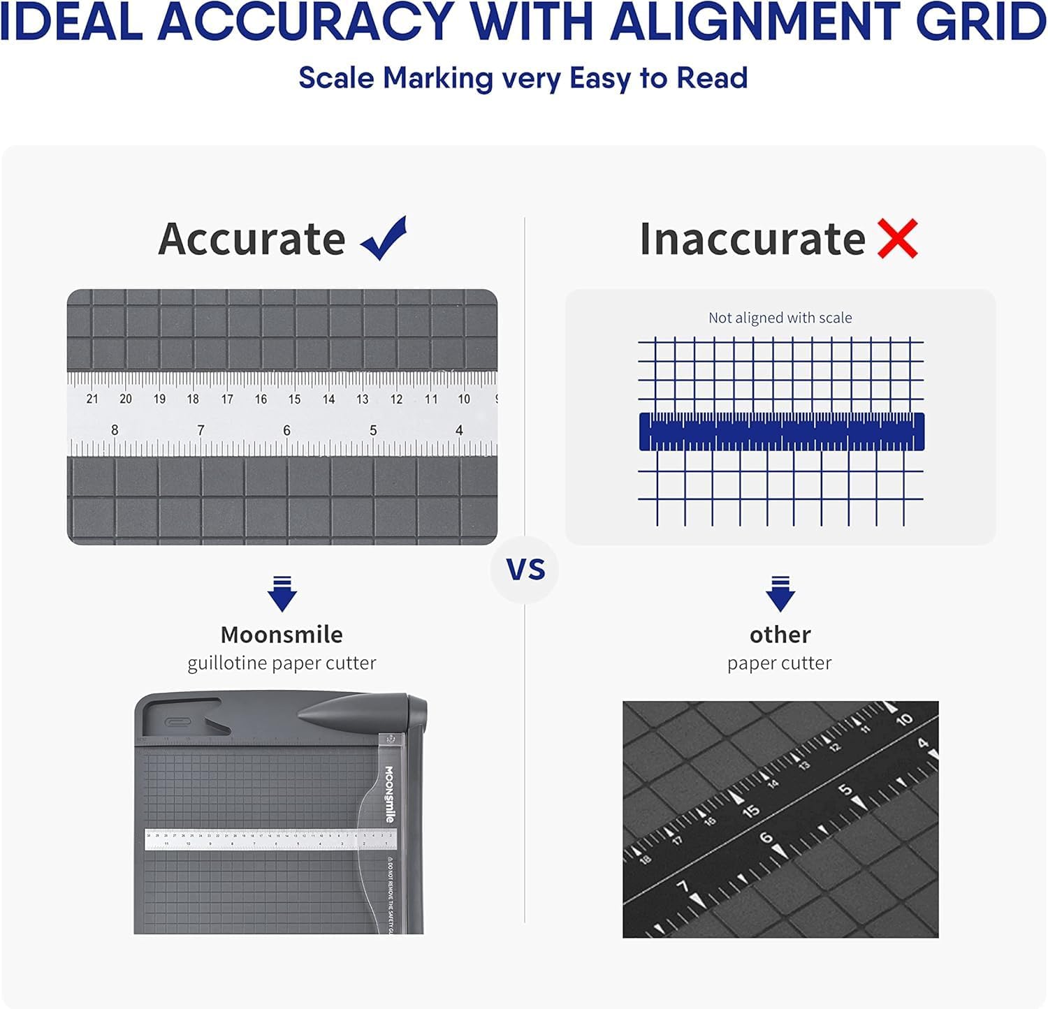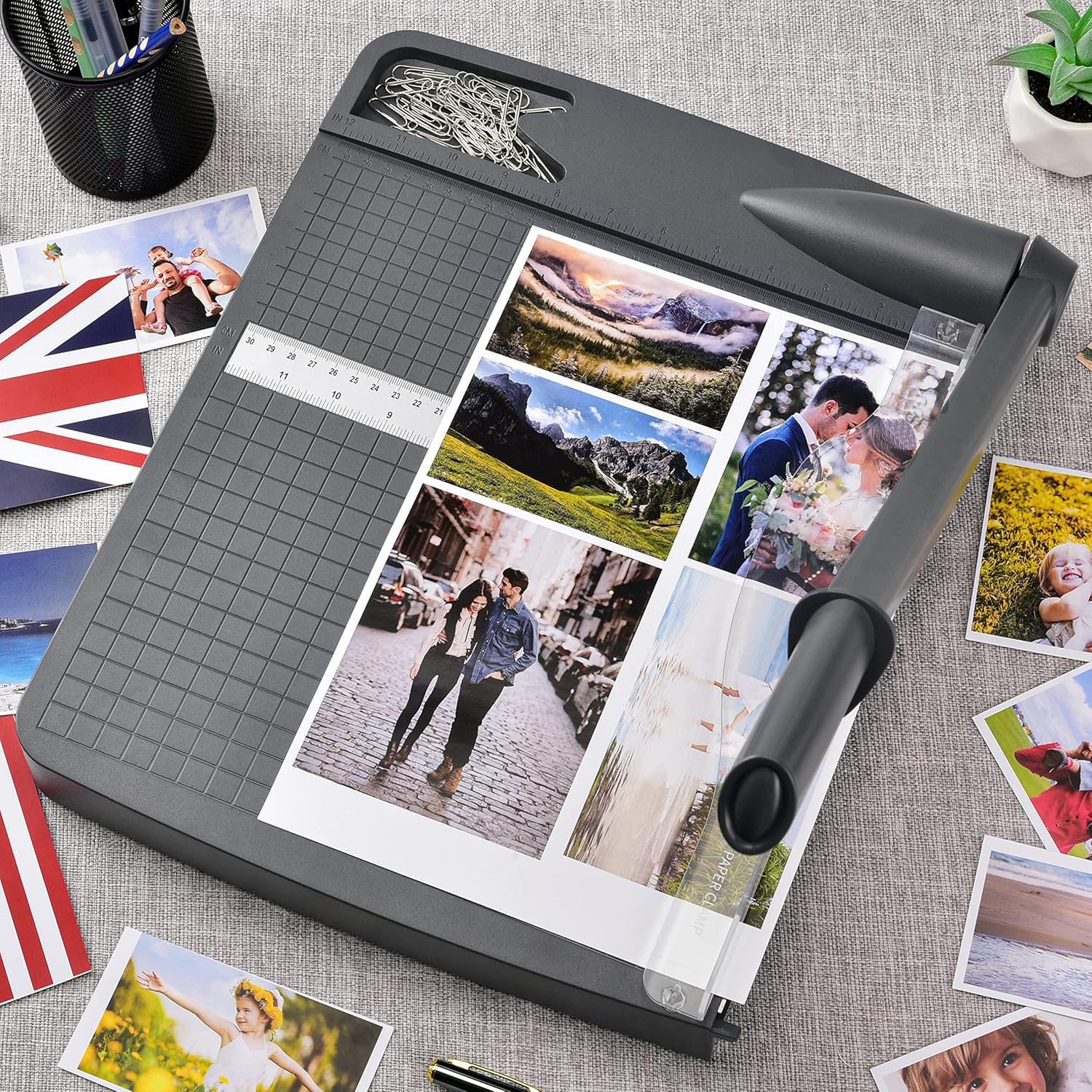- Multifunctional Paper Trimmer:Designed with a safety guard, a safety latch, and anti-slip rubber pads, this professional paper cutter/trimmer can cut 12 sheets (20-16 lb) at a time safely for multiple purposes of use; a paperclip storage convenient for quick and hassle-free paper waste disposal or paperclip, binder clips, and small accessories storage