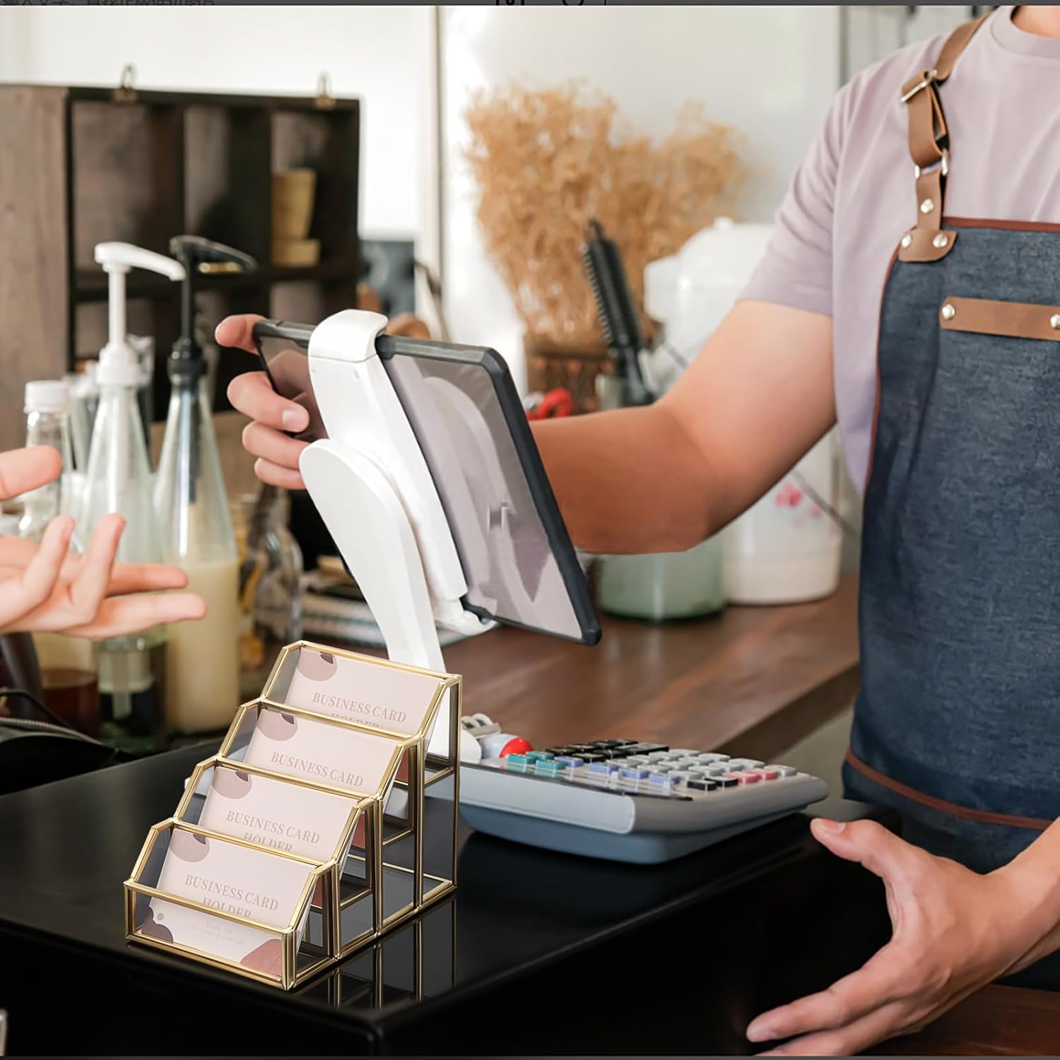 - Keep Your Business Card In One Place - 4 slots design,with this glass name card stand, you can prevent losing your business cards anywhere,it keeps your card in order and your desk tidy