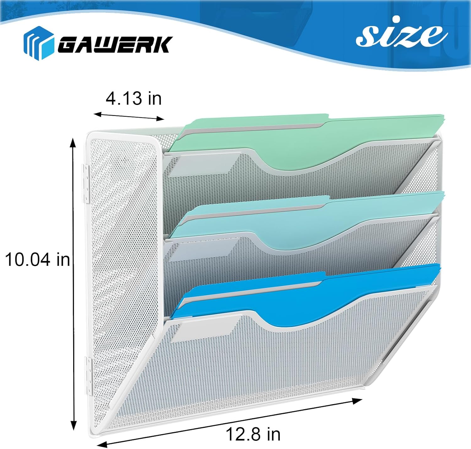 3 Tier Hanging Wall File Organizer, Mesh Mail Paper Orgnization Hanging File Folder Holder for Home Office, White