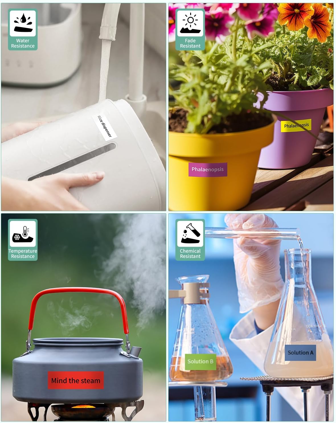 - Features: (1) Spilt-backing design for easy peeling and apply. (2) The 18mm 0.7 laminated white tz tape is adhesion, resistant, temperature resistant, water resistant, chemical resistant, fade resistant, UV resistant, abrasion resistant, grease resistant, grime resistant, and corrosion resistant