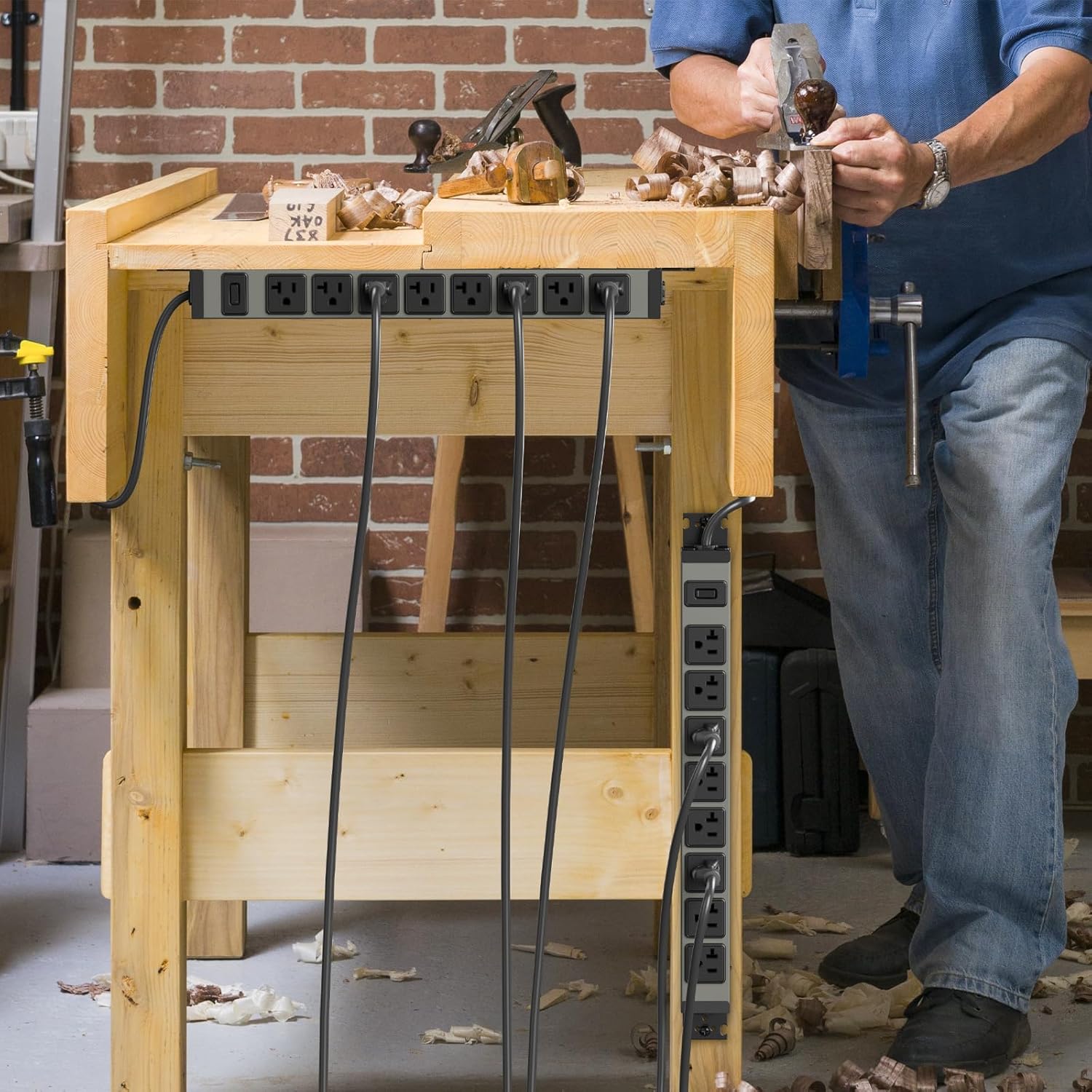 - 1200J Surge Protector: Sturdy power strip garage with overload protection, the reliable overload switch will trip off automatically to protect your devices when over-voltage, over-current, overload, high-temperature, short-circuiting.