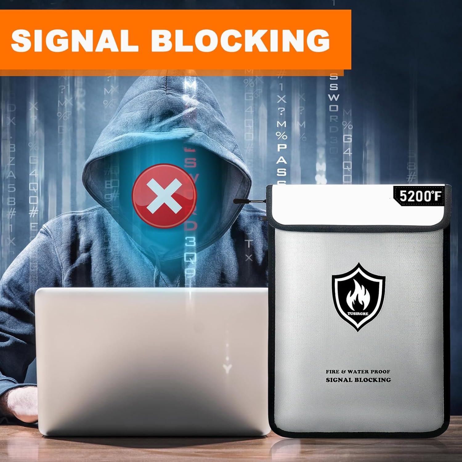 6200°F Upgraded Fireproof Document Bag, 15.7 x 11.4 Faraday Bag, Fireproof Money Bag with Zipper/Reflective Strip, 18 Layers of Heat Insulated Materials, RFID Blocking Bag Protects Devices