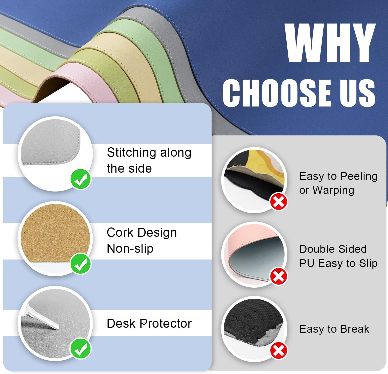 - Waterproof and Easy to Clean Desk Mat: Our leather desk mat is specially designed to handle any spills or messes during use. Made with a waterproof and stain-resistant combination of PU leather, these keyboard mats for desks can be easily wiped clean with a wet cloth, ensuring a hassle-free maintenance experience. Designed with side seams to prevent peeling.