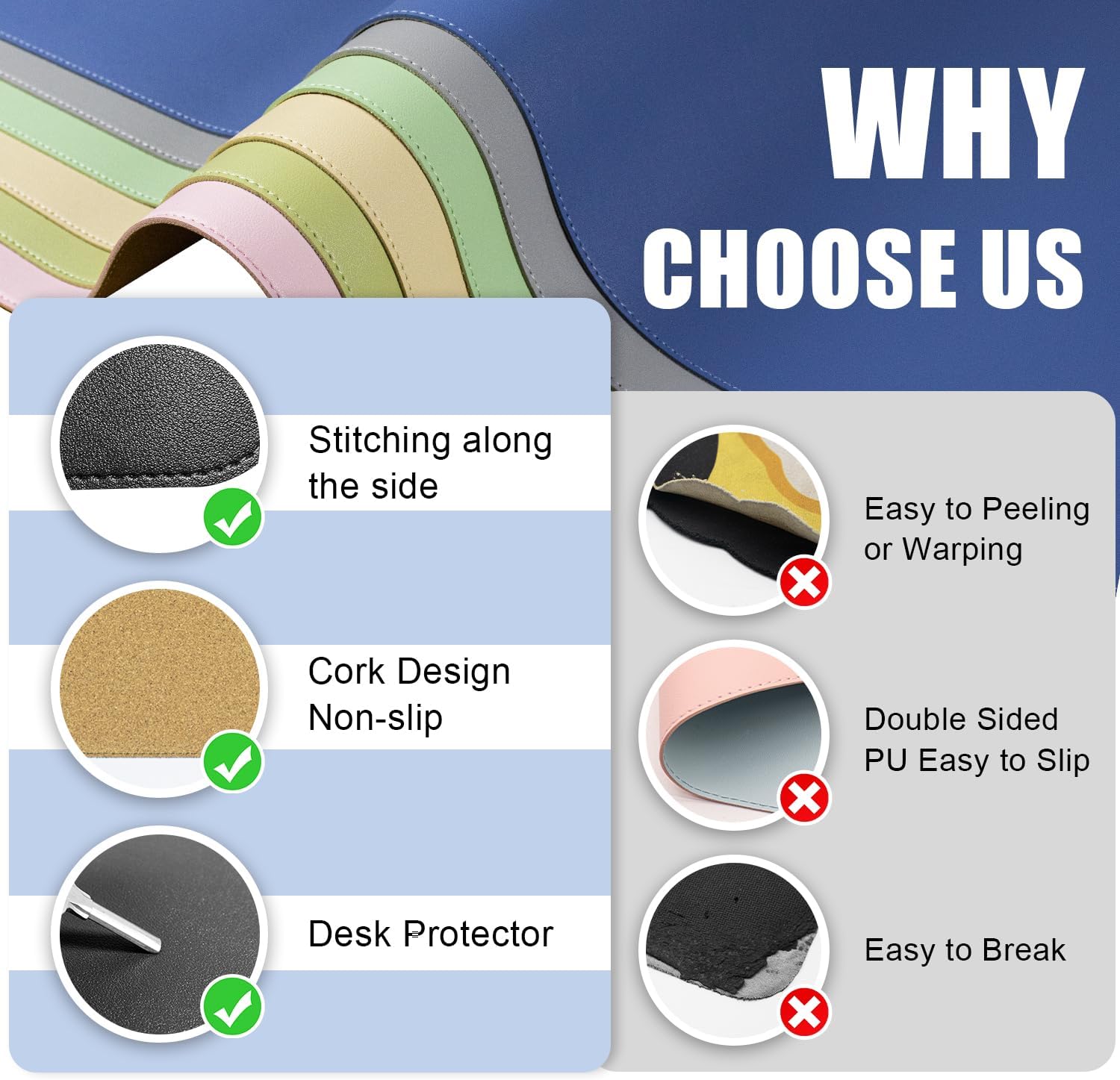 - Waterproof and Easy to Clean Desk Mat: Our leather desk mat is specially designed to handle any spills or messes during use. Made with a waterproof and stain-resistant combination of PU leather, these keyboard mats for desks can be easily wiped clean with a wet cloth, ensuring a hassle-free maintenance experience. Designed with side seams to prevent peeling.