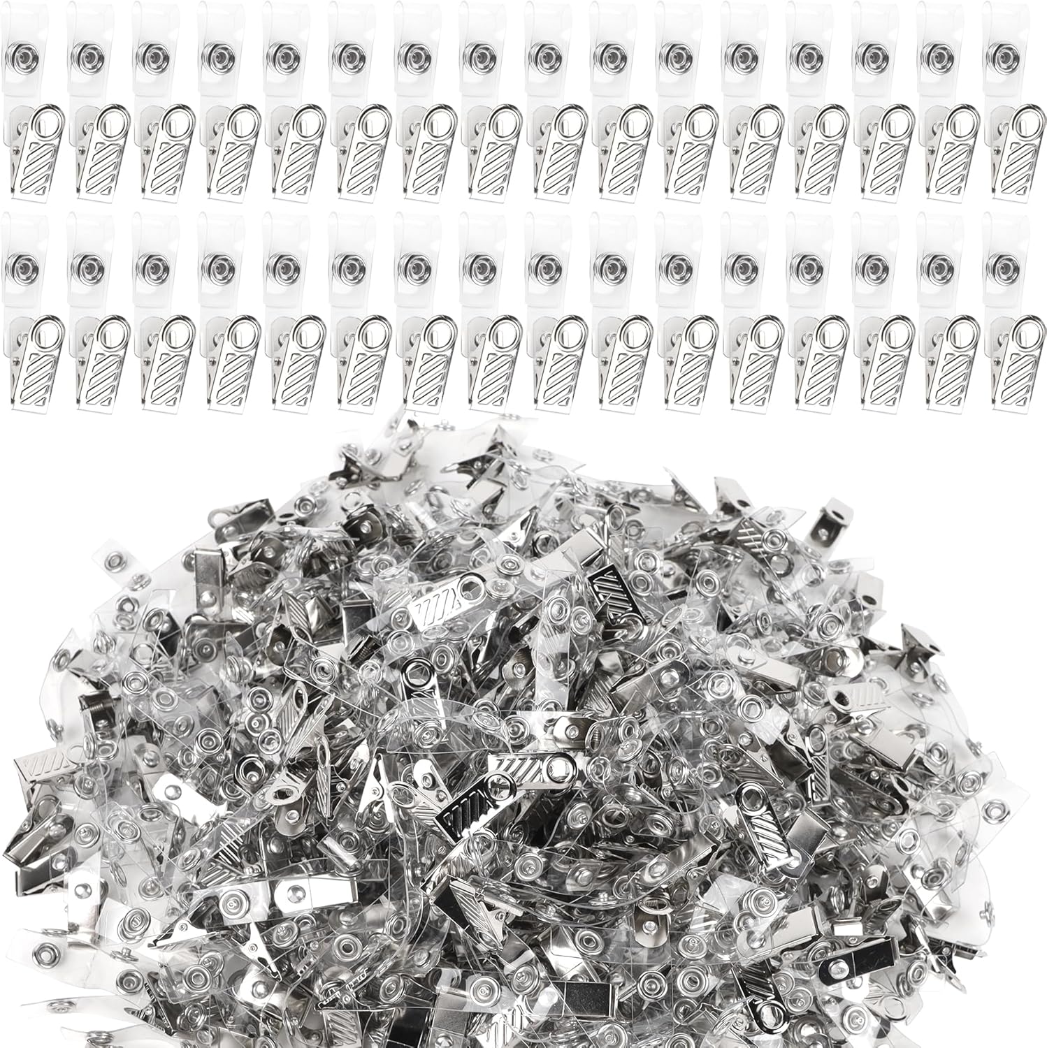 Happy Trees 400 Pcs Metal Badge Clips with Clear PVC Straps, ID Holder Clip for Badge Holders, Name Tags, ID Cards, Work Badges