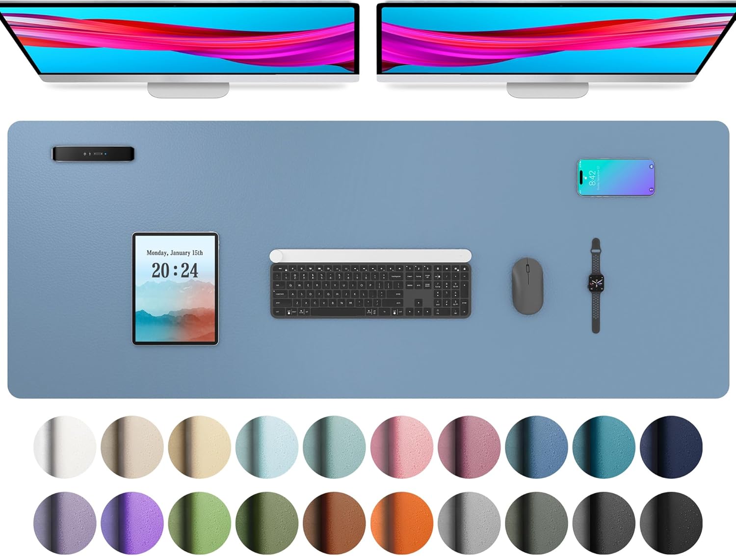 Aothia Leather Desk Pad Protector, Office Desk Mat, Large Mouse Pad, Non-Slip PU Leather Desk Blotter, Laptop Desk Pad, Waterproof Desk Writing Pad for Office and Home (48"x17", Denim Blue)