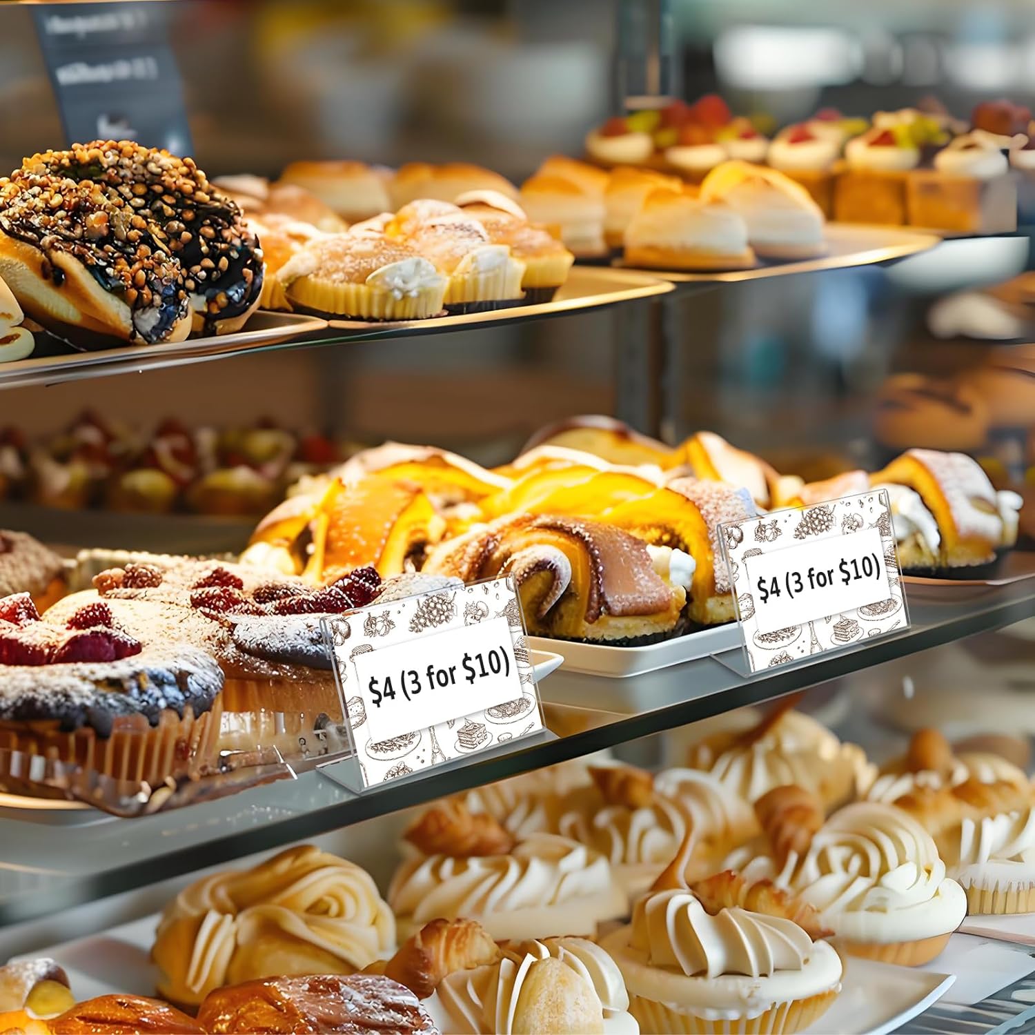 - ✌Easy to Use: This food label stand is designed in an L shape, making it easy for you to insert and take out labels. The sleek and transparent design allows your content to take center stage. The transparent exterior allows people to easily view information, making these acrylic sign holders ideal for retail displays, trade shows, events, and office settings.