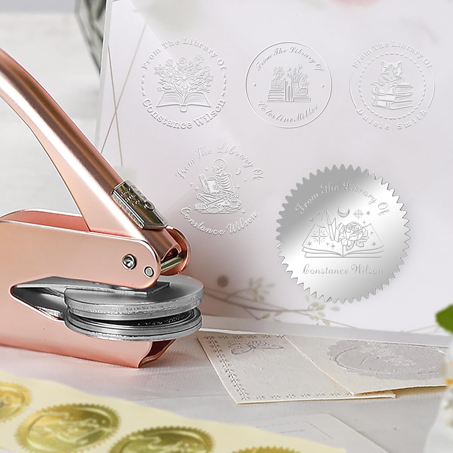 Book Embosser Custom Embosser Stamp with Your Name or Design Personalized Library Embosser Stamp Customized Books Business Cards Paper Documents Notebooks etc. (03)
