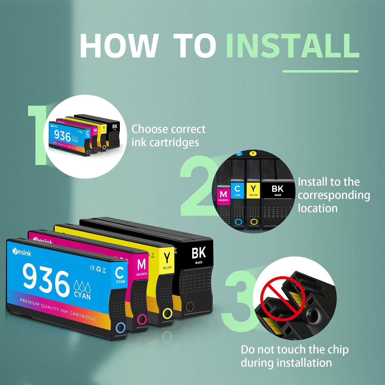 - Package Contents: Compatible for hp 936 Ink Cartridge Combo Pack ( 1 Black,1 Cyan,1 Magenta,1 Yellow).