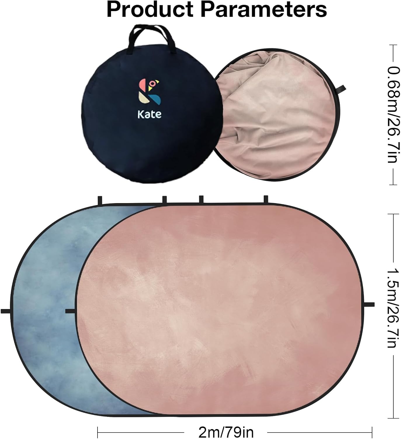 - 1x 5x6.5ft/1.5m(W) x 2.0m(H) collapsible backdrop. Both sides are Kate fabric backdrops which can be used as photography background.