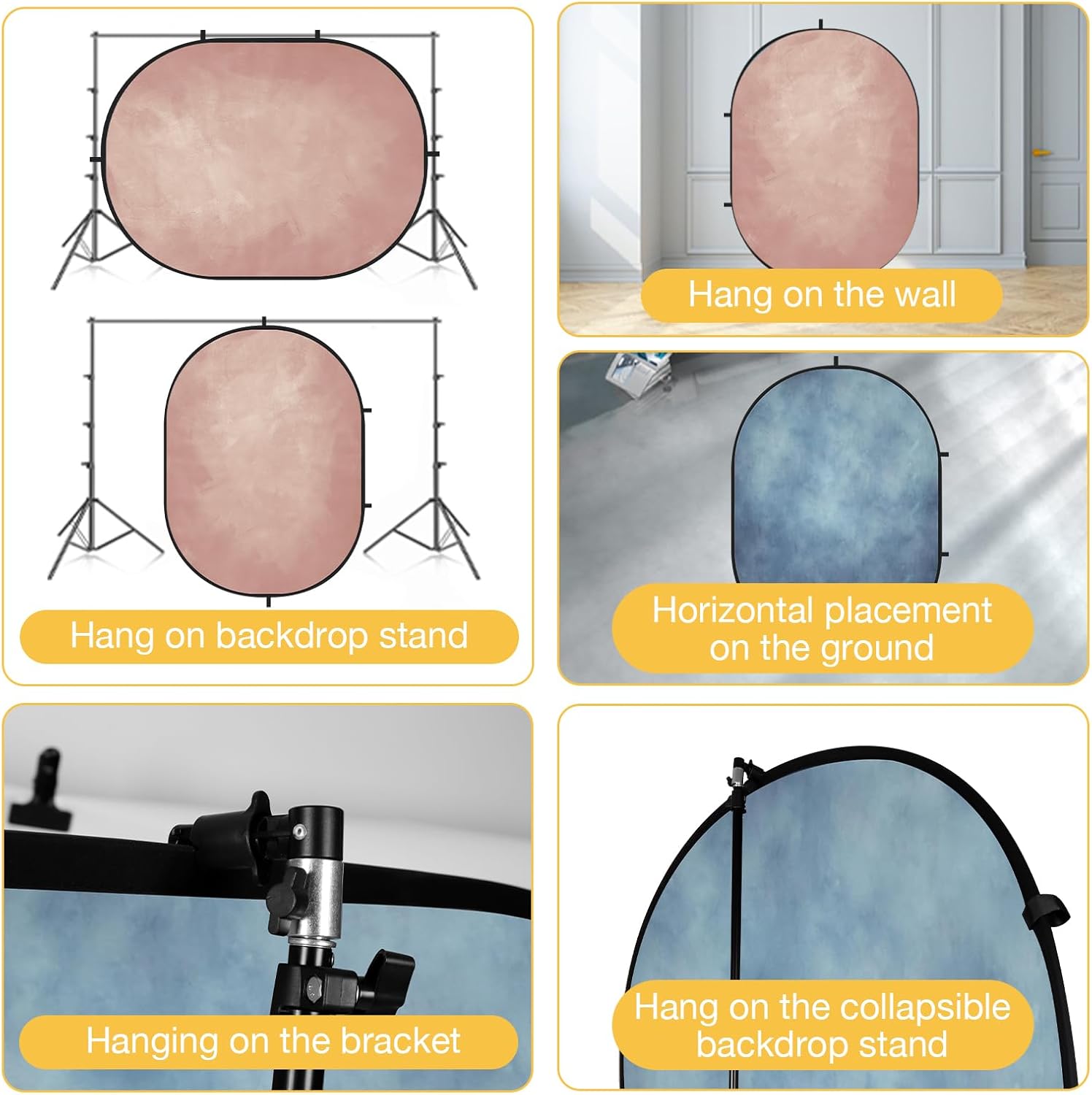 - 3 nylon buckles are individually set around each collapsible backdrop. Hanging in portrait or landscape depends on yourself.