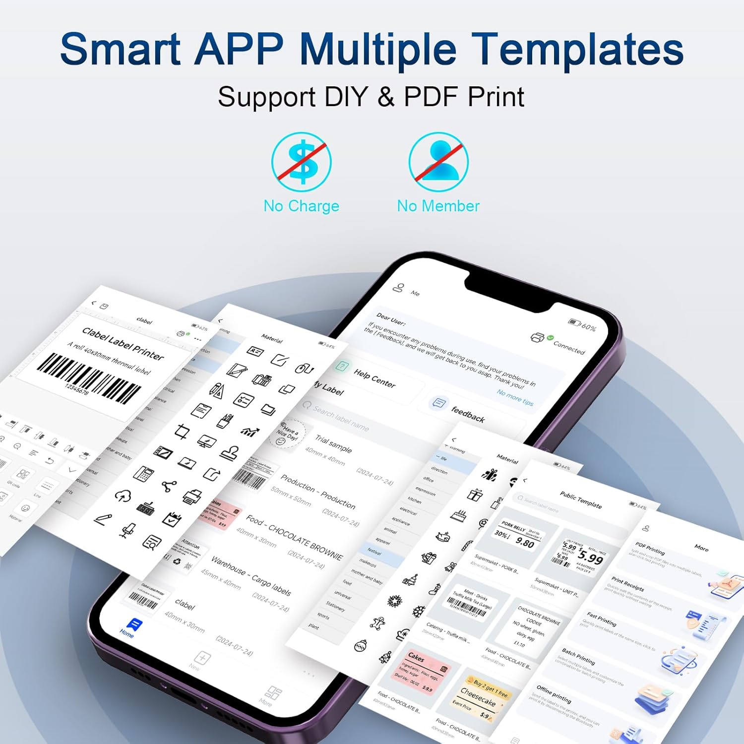 - Support USB & Bluetooth Connection: Seamlessly connect via USB and unleash the power of printing from any device. Effortlessly print directly from your phone using our "clabel trade" APP, designed for easy operation and maximum flexibility