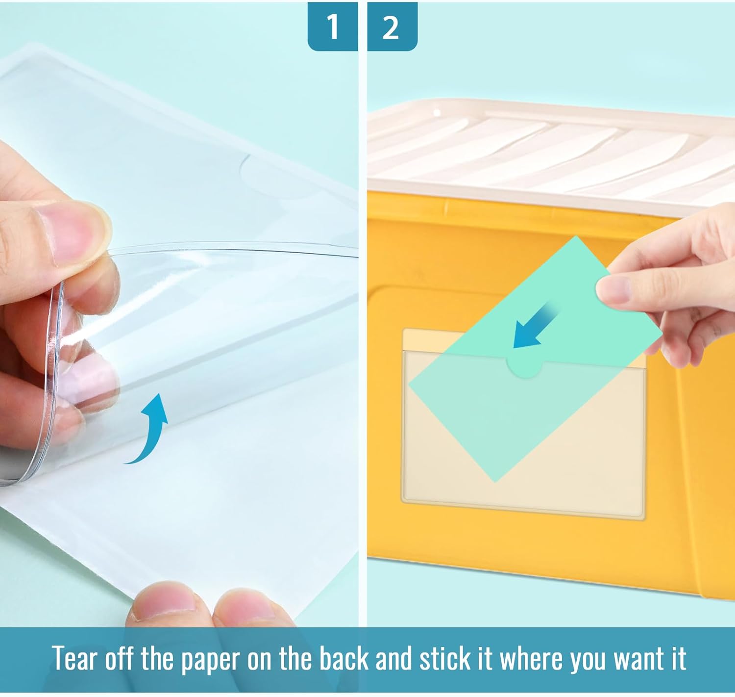 - High Quality Material: Adhesive label pockets is made of premium PVC material, which is transparent and clear, easy to read, and won't crack or turn yellow after long-term use