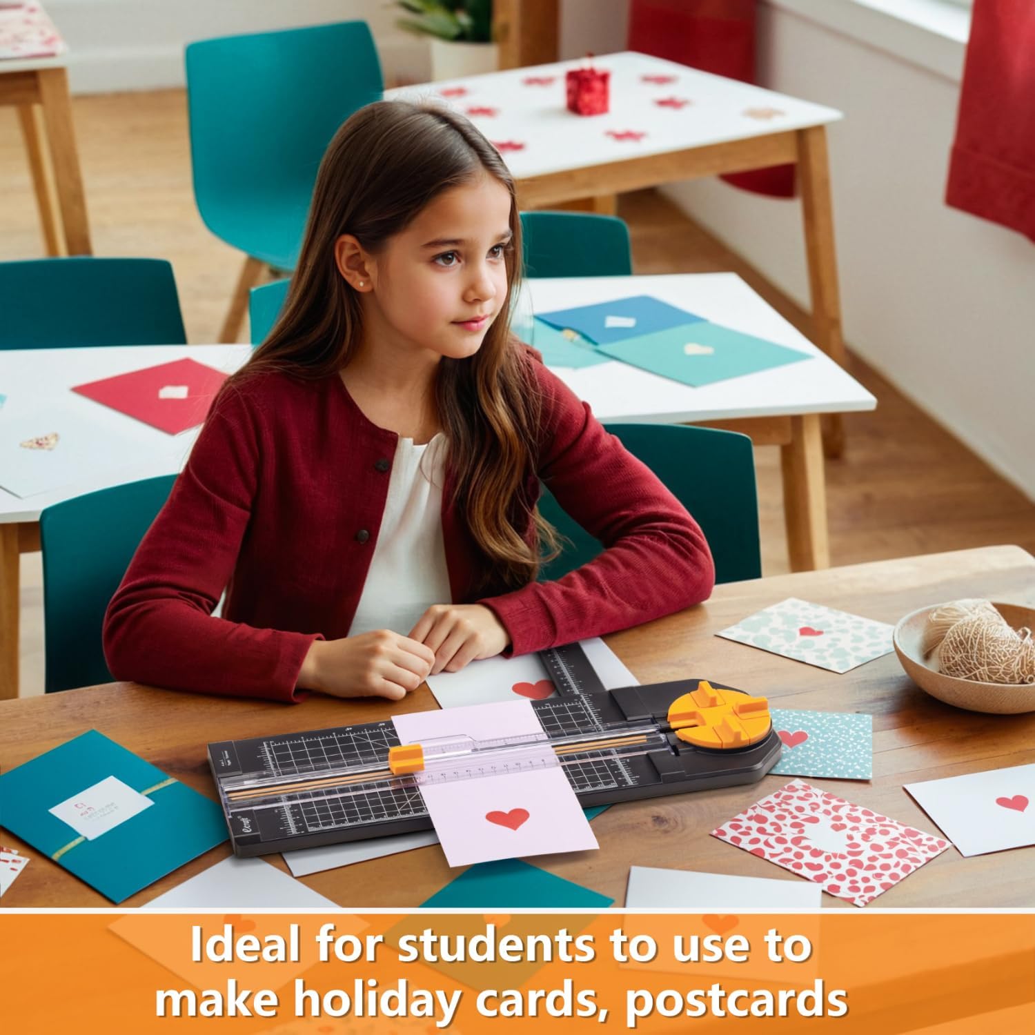 - 【Portable and Safe】Our paper cutter is designed with your safety in mind, the non-slip blade handle makes every cut fast and accurate, safety is required when replacing the blades and rotary cut bar . Children can use it safely with adult supervision, ideal tool for home projects.