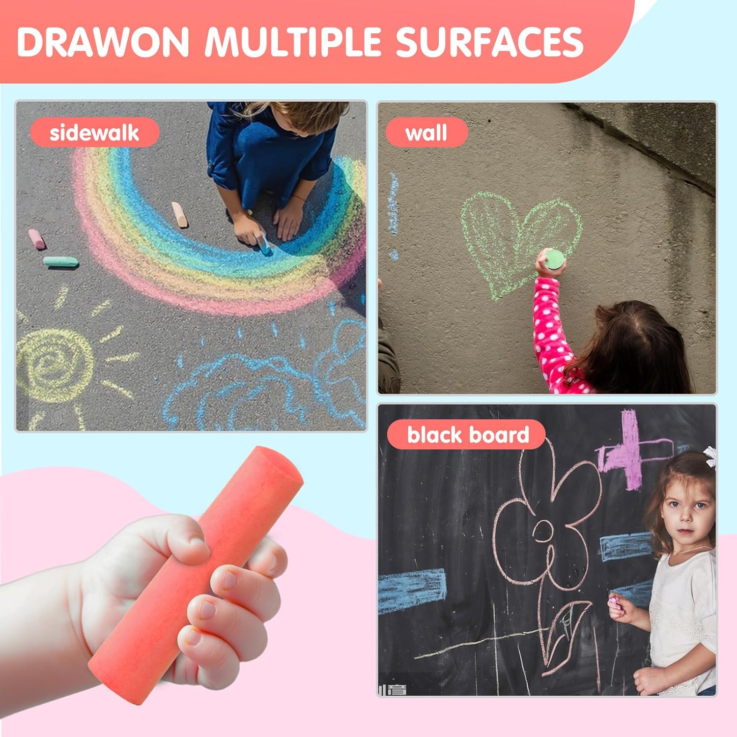 - Washable and Easy clean chalk set: The young childrens chalks are washable and easy to clean off any surface, ensuring your family can enjoy mess-free drawing, ideal for both indoor and outdoor use