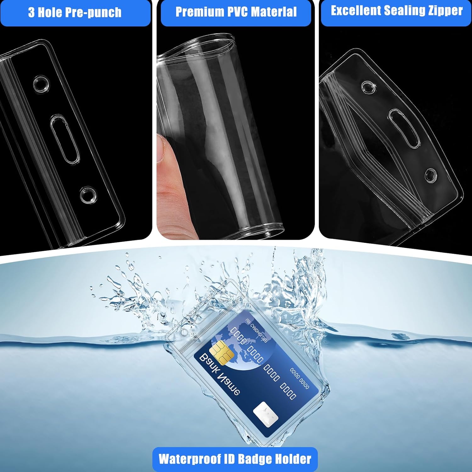 - Clear badge holder with lanyard fit for ID card, credit card, office ID name tags, bus card and etc.