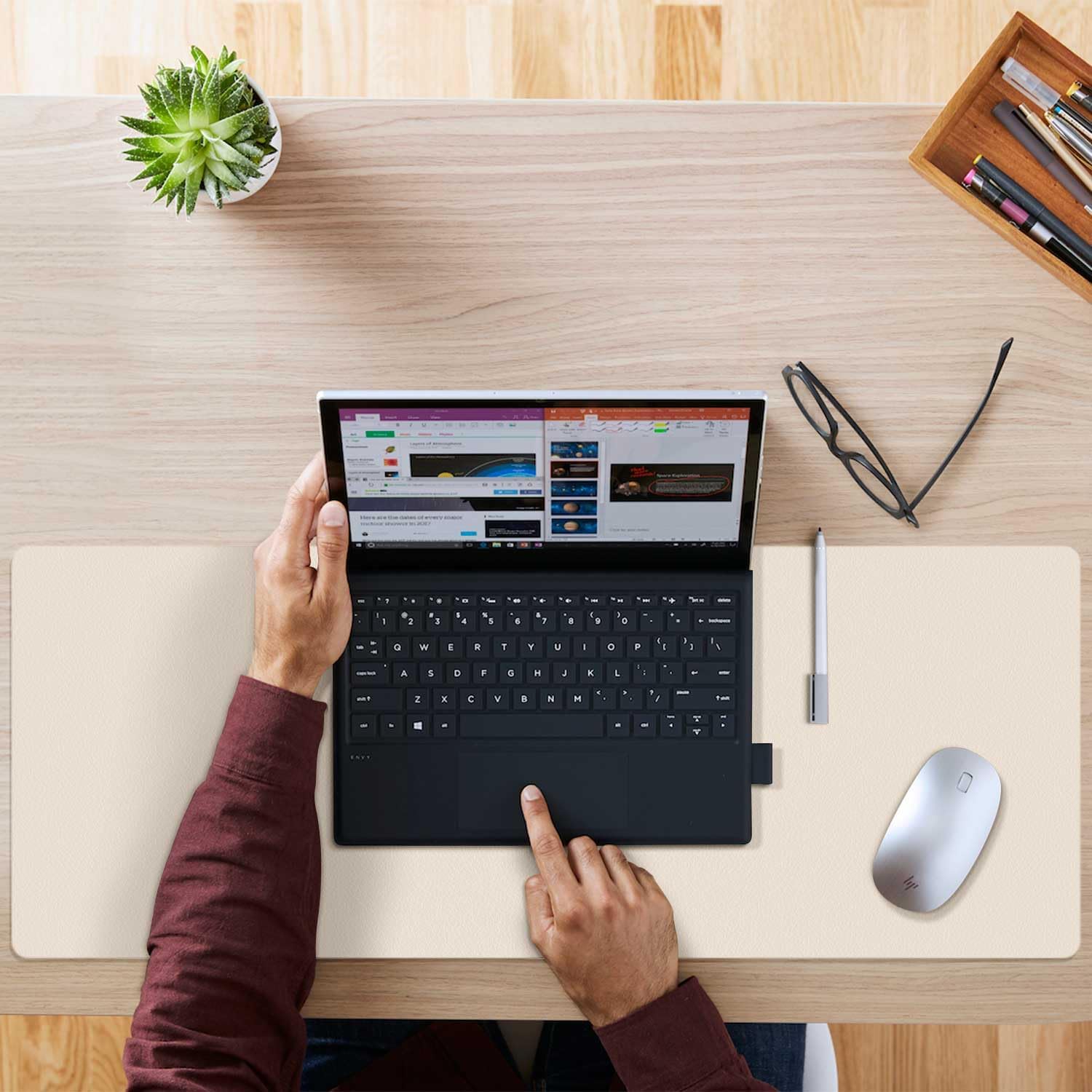 - Multifunctional Desk Mat: Available in three sizes (23.6"x13.7", 31.5"x15.7", 36"x17") with 0.08 inches thickness, offering a soft, elastic touch. Spacious enough for your laptop, mouse, keyboard, and journal. The non-slip material ensures stability during use