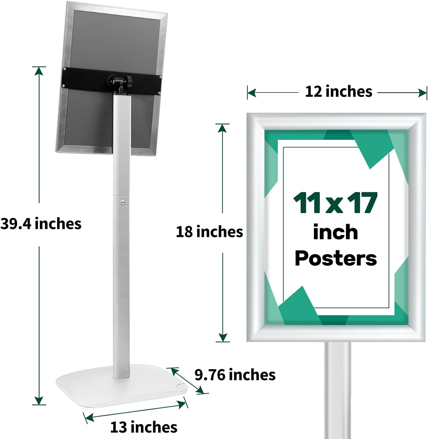 Heavy Duty Pedestal Sign Holder for Display, 11 x 17 inches Adjustable Floor Standing Sign Holder with Weighted Base , Vertical and Horizontal View Sign Stand for Indoor/Outdoor Advertising,Silver