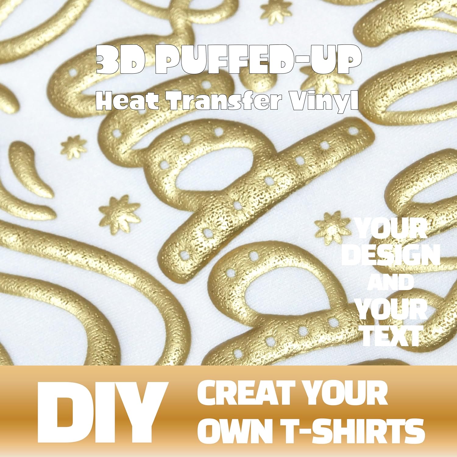 3D Puff Vinyl Heat Transfer 10" x 12" - 10 Sheets Foaming HTV Gold Colors Bundle/Variety Pack, Adhesive Vinyl, Iron-On Transfer, Heat Press with Cricut Silhouette Cameo