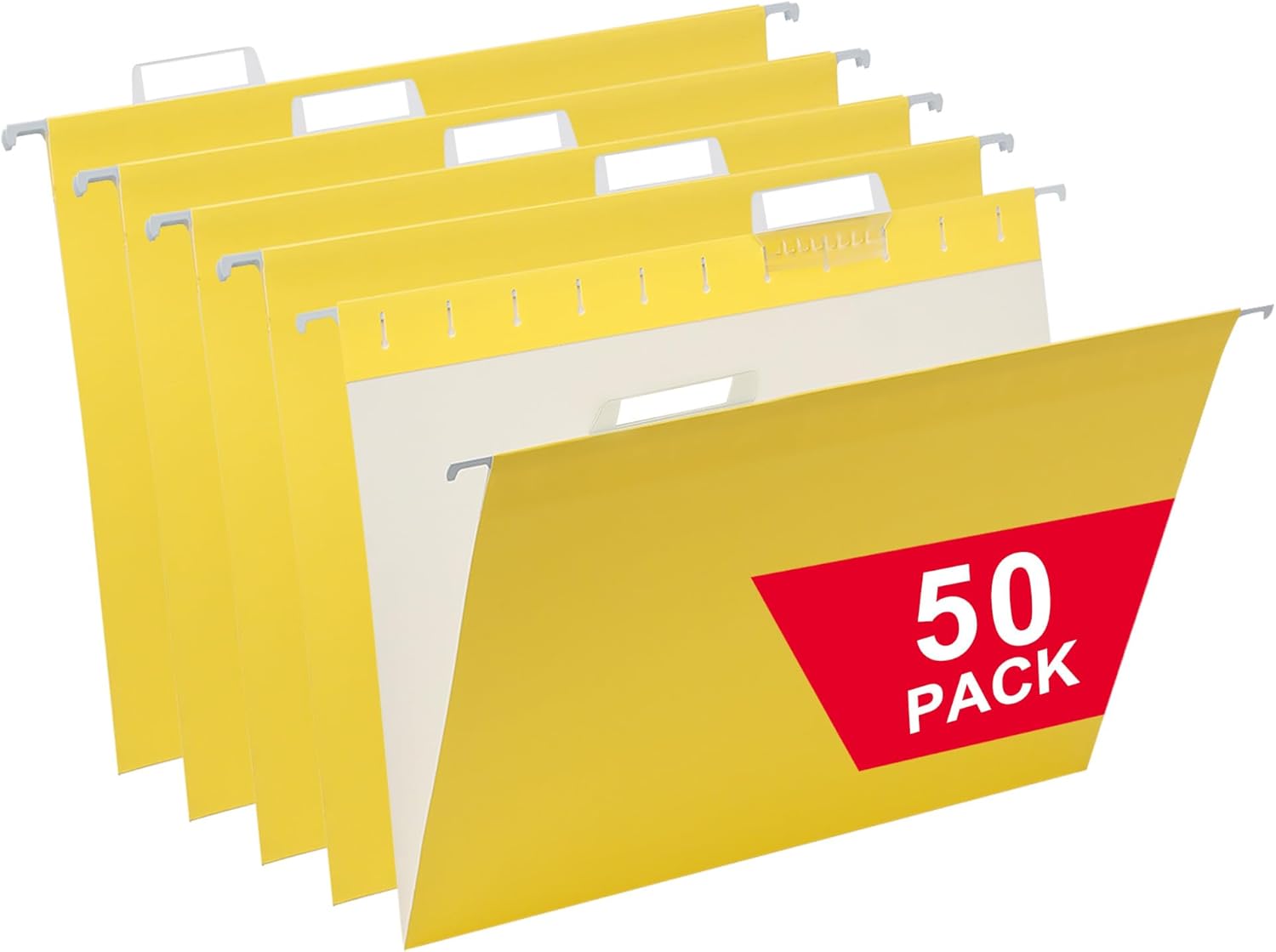50 Packs Hanging File Folders,Yellow Letter Size File Folder,Designed for Bulky Files,Filing Cabinet,1/5 Adjustable Tabs for Office,School,Home
