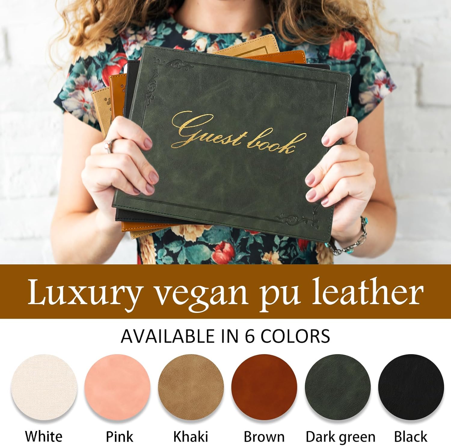 - ELEGANT DESIGN: Treasure your special day in our beautiful guest book. Measuring 8 x 10 inches, it comes with an exquisite PU leather cover, decorated with beautiful gold foil letters and crafted using advanced technology. The shimmering gold accents not only enhance the beauty of the guest book wedding reception, but also its overall quality, making it treasured keepsake for years to come