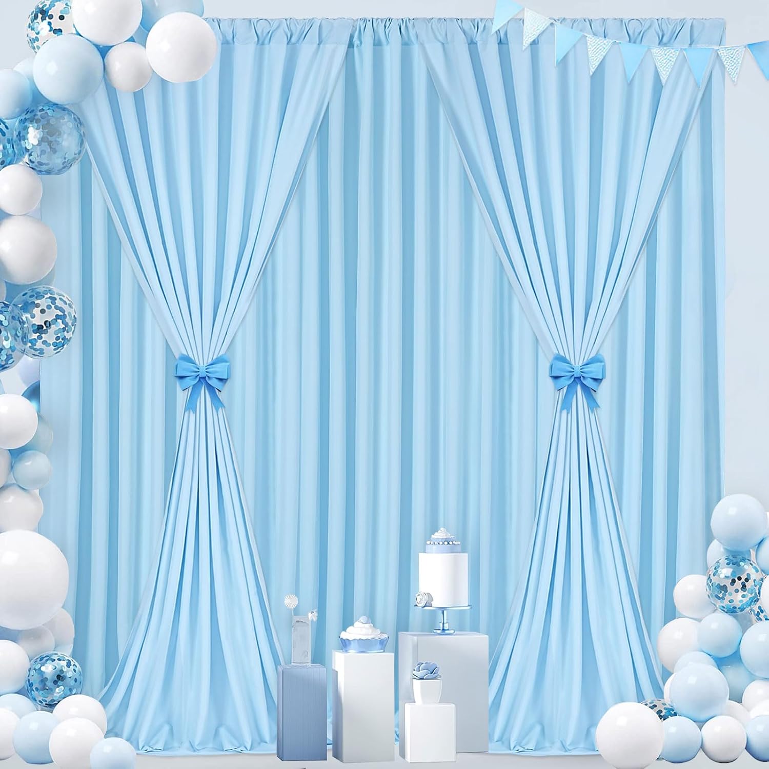 Baby Blue Backdrop Curtains: 4 Panels 5ft x 10ft Polyester Photography Backdrop Drapes - Baby Shower Birthday Party Background