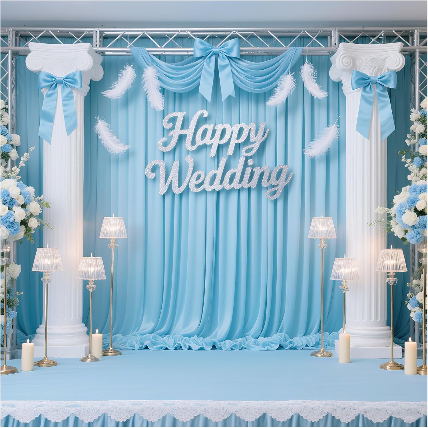 Baby Shower Backdrop Curtains 10x10ft: Baby Blue Backdrop Drapes - Polyester Photo Background Wedding Party Decorations