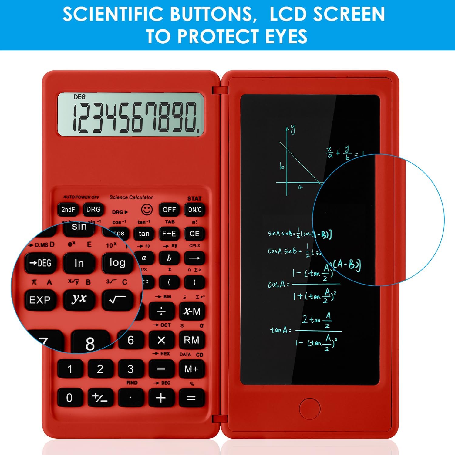 Scientific Calculators for Students, Red Math Calculator with Notepad,10-Digit Large Screen, Classroom Must Haves for Middle High School Supplies & College (Red)